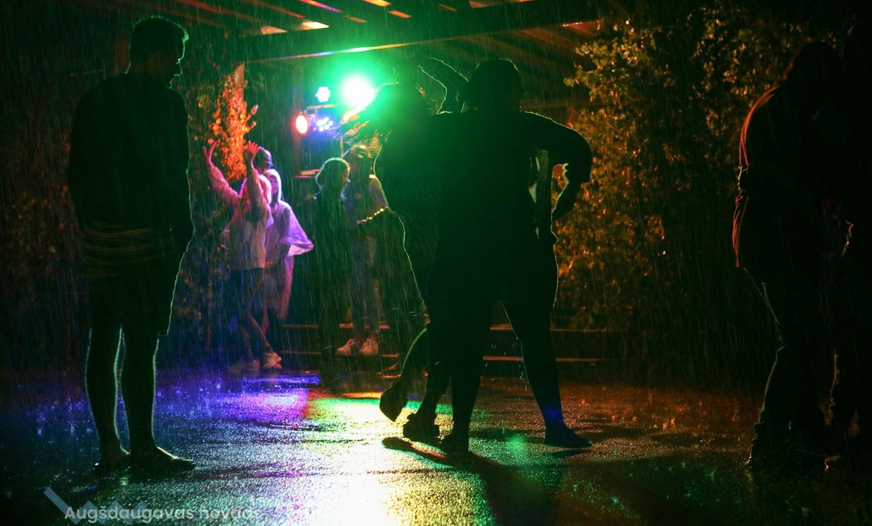 Pašā vakarā, spītējot sliktajiem laika apstākļiem, bija iespēja dejot Simtgades Zaļumballē.