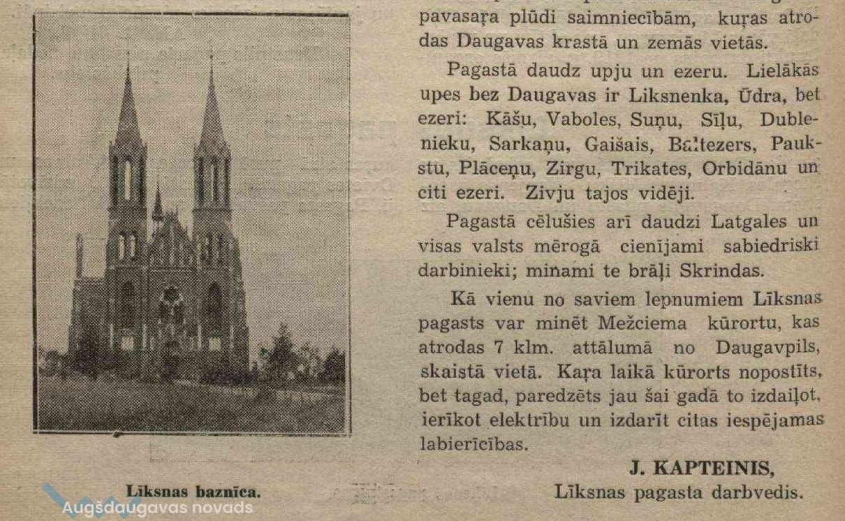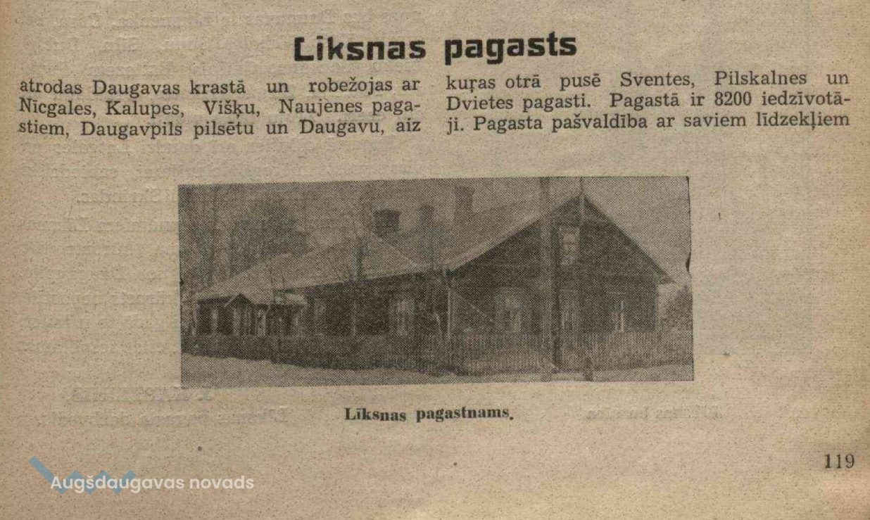 Latvijas Lauksaimniecības kameras izdevums "Daugavpils Apriņķis. Dzīve un darbs" (1937. g.) raksta par Līksnas pagastu: