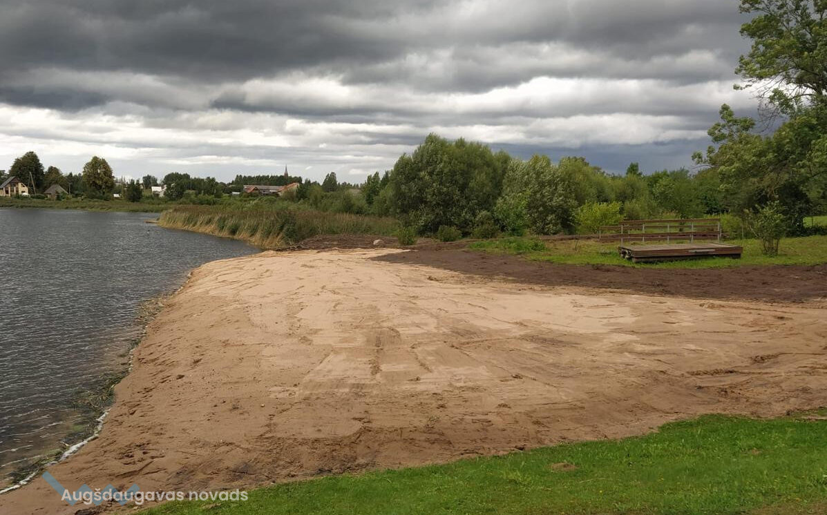 Projekta ietvaros tika attīrīta krasta līnija no krūmiem kā arī uzbērta smilts un uzlabota infrastruktūra. Uzstādīti soli, atpūtas krēsli un jauna ģērbtuve iedzīvotāju ērtībām, kā arī atjaunots pontona krāsojums.