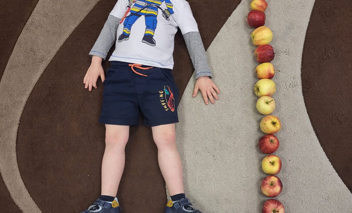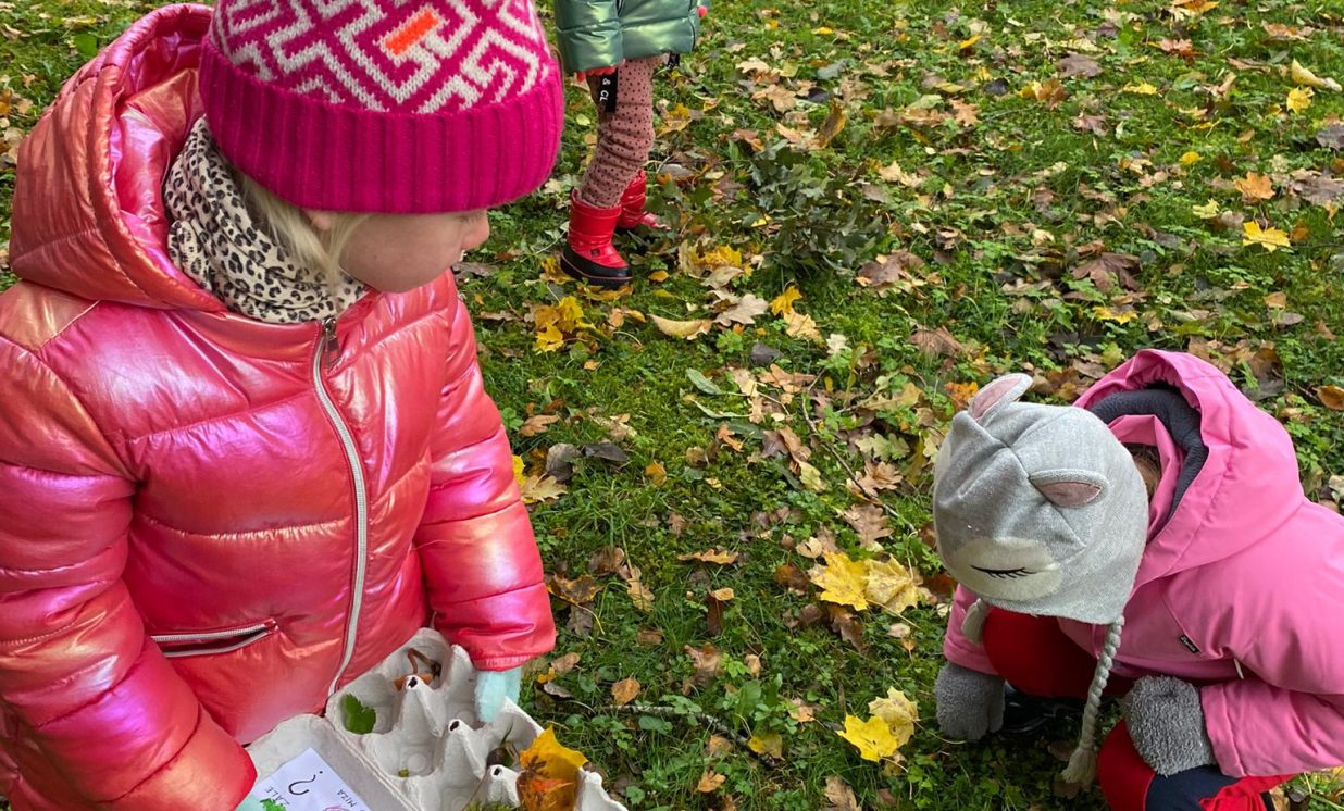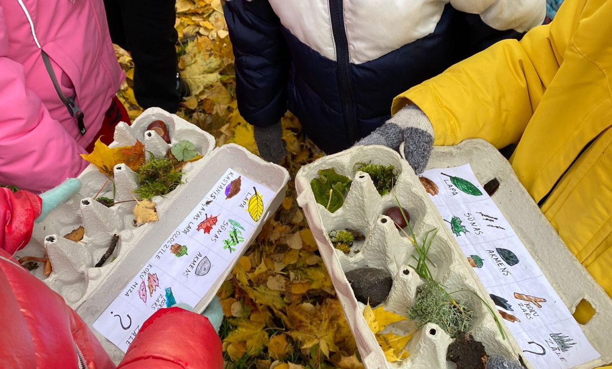 Savukārt četrgadnieki devās mācību ekskursijā uz Hoftenbergas parku, lai meklētu šai vietai visraksturīgākos dabas materiālus. Ekskursijas noslēgumā tapa “Dabas dārgumu kaste”. Šajā grupā tika īstenots interesants mērīšanas projekts. Bērni uzzināja, ka mērīt var ne tikai ar mērlenti, lineālu, bet arī ar āboliem. Katram bija iespēja izmērīt sava auguma garumu ābolos un aizpildīt tabulu “Cik ābolu garš es esmu?”