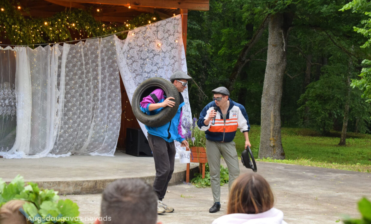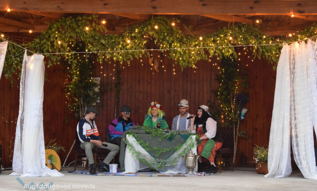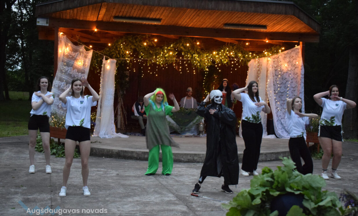 Kad stāsts beidzās un maģiskā Līgo nakts bija klāt, tika iedegts tradicionālais Jāņu ugunskurs – kā senču simbols, siltuma un gaismas avots, kas sargā un svēta. Dzirksteles pacēlās debesīs, un ap to pulcējās gan aktieri, gan skatītāji – nu jau visi kā viena kopīga ģimene. Nakts turpinājās zaļumballē, kur dejoja līdz pat rīta gaismai – brīvi, sirsnīgi un ar mirdzumu acīs.