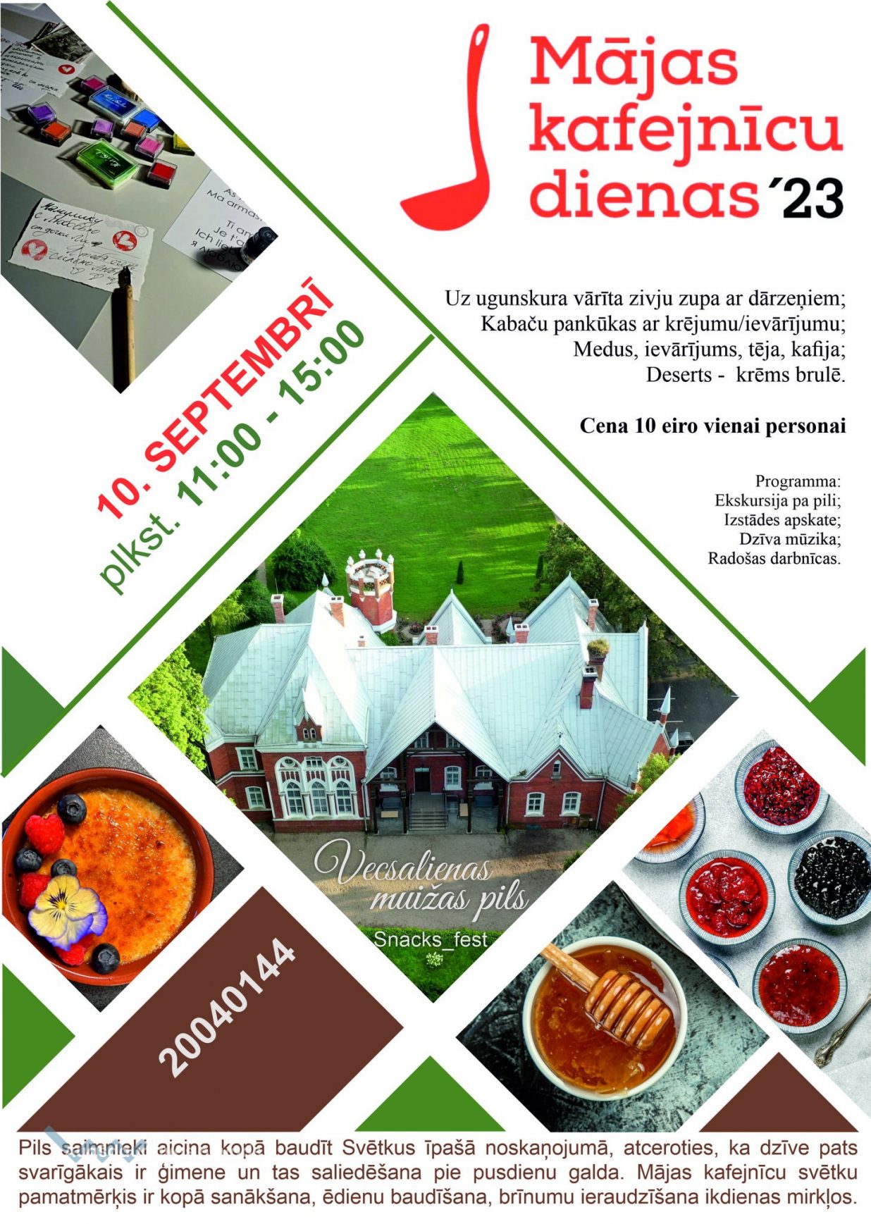 Iepriekšējā pieteikšanas ir OBLIGĀTA: 20040144, e-pasts: muiza@vecsaliena.lv.