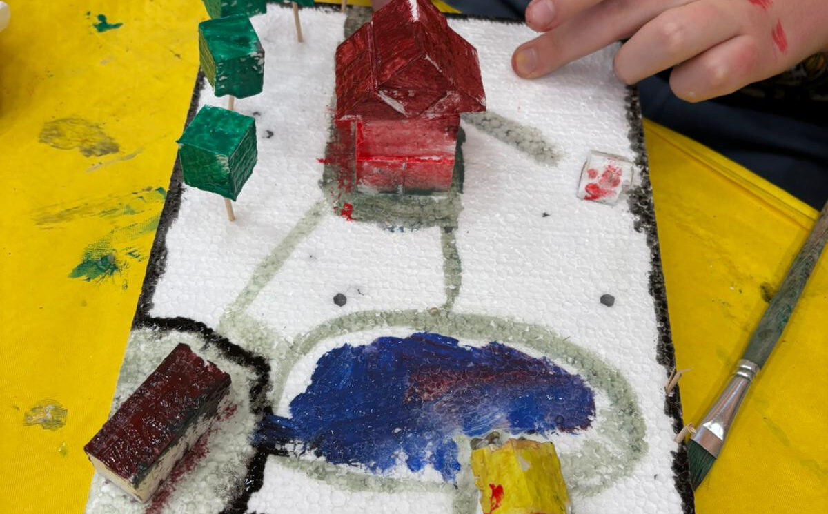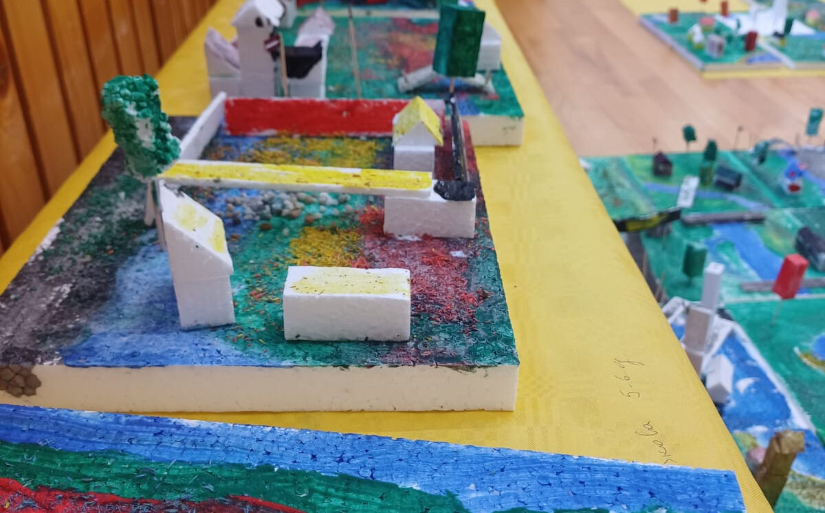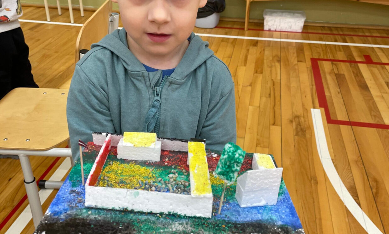 Darbnīcās skolas audzēkņi veidoja 3D maketu, izmantojot materiālus – putuplastu, taktilos materiālus, dabas materiālus, līmi, guašas krāsas, kociņus utt. Skolēni mācījās plānot darba secību, apguva maketa konstruēšanas prasmes, veidoja radošu un dizainisku domāšanu.