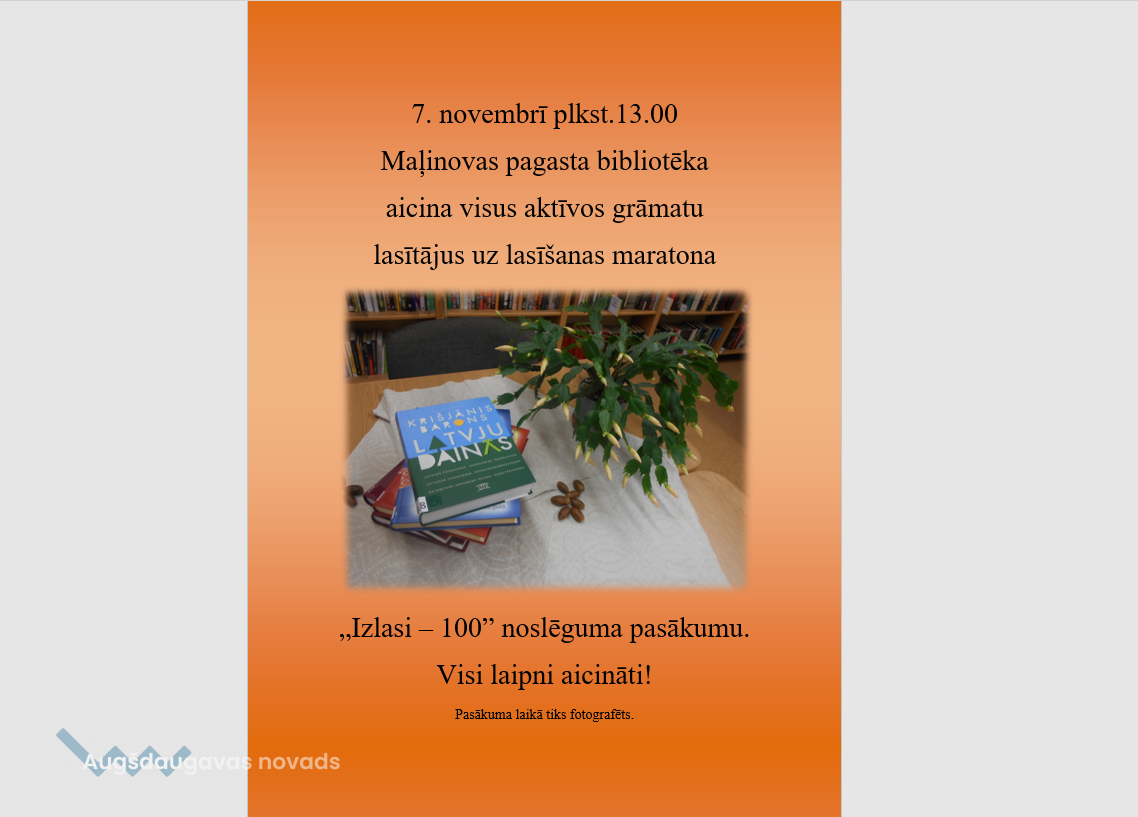 Maļinova aicina uz lasīšanas maratona “Izlasi – 100” noslēguma pasākumu
