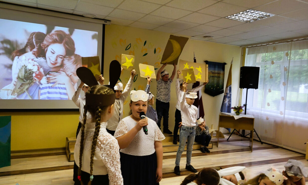 Gan dzejoļu un prozas rindās, kuras runāja pasākuma vadītāji Katarina VAIKULE un Alekseja JAGODKA, 2.kl. teātra pulciņa skolēni , gan arī 1. un 3. klases mazo mūziķu, vokālo ansambļu “Ķipariņi” un “Spurgaliņas”, vokāli instrumentālā ansambļa un 1. – 5.kl. kora dziedātāju dziesmās skanēja pateicības vārdi par māmiņas lielo mīlestību, rūpēm, gādību un atbildību.