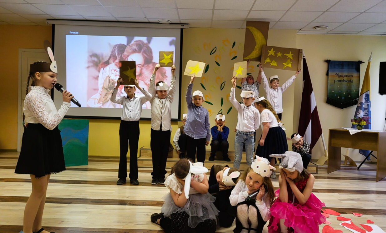 10. maijā Naujenes pamatskolas māmiņas, vecmāmiņas un krustmātes tika aicinātas uz Māmiņu dienas koncertu ”Svētku kliņģeris māmiņai”.