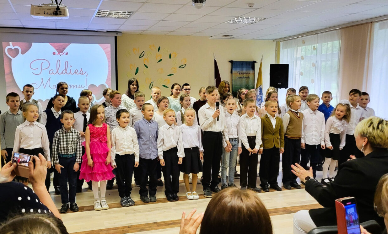 Priecājamies, ka tik daudz māmiņu atnāca noskatīties savu lolojumu priekšnesumus. Esam pārliecināti, ka māmiņas lepojas ar saviem bērniem un bija priecīgas ierasties skolā, lai redzētu savu bērnu sarūpēto koncertu un satikt skolotājus. Maziem kopā būšanas mirkļiem ir liela nozīme!
