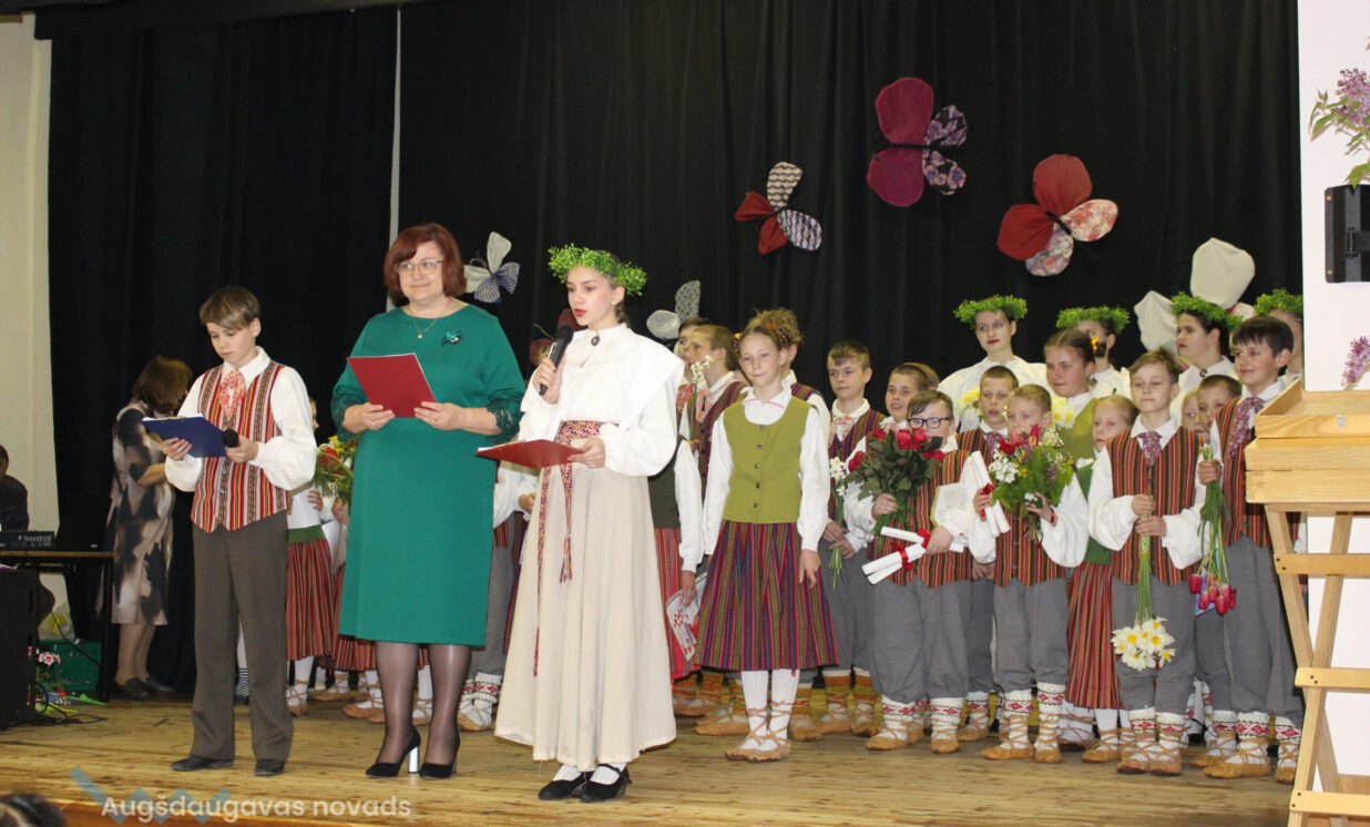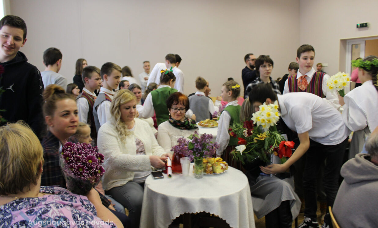 “Pavasarī māmiņas uzzied. Viņas kļūst krāsainas, košas, dzidras un skanīgas. Viņas priecājas par pirmo balto sniegpulkstenīti, zilo rotaļīgo vizbulīti, smaržīgo narcisi un krāšņajām daudzkrāsainajām tulpēm.” Tā koncertā laikā saka pasākuma vadītājs Mārcis no 7.klases.