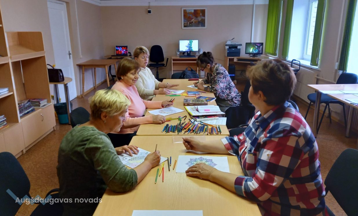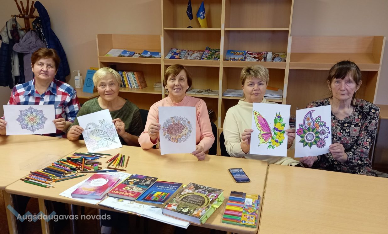Mandalu krāsošanas nodarbība Naujenes tautas bibliotēkas Vecstropu apkalpošanas punktā