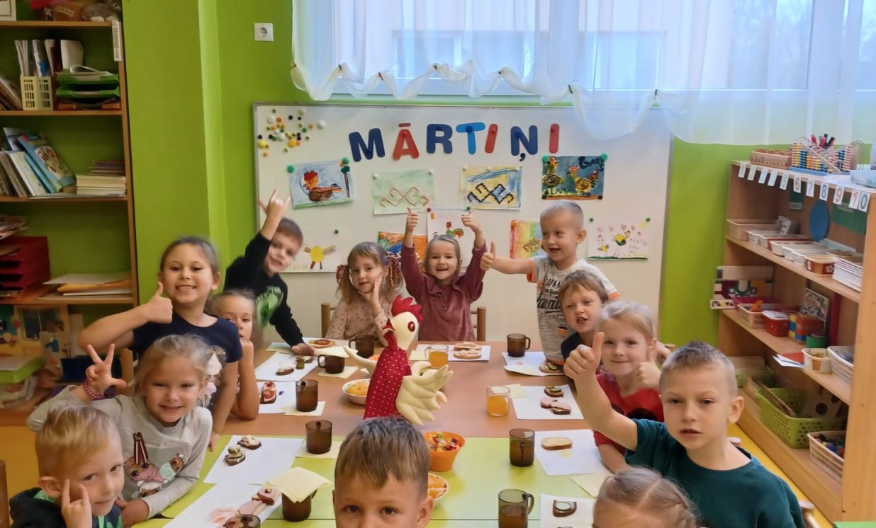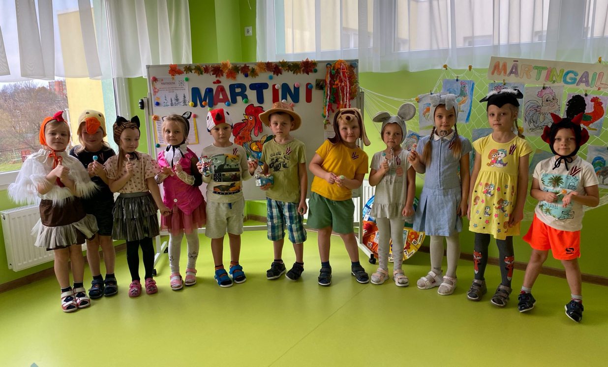 Klāt Mārtiņdiena! Laiks, kad visai ražai jābūt novāktai, zemes darbiem padarītiem, jo zeme dodas ziemas guļā uzkrāt spēkus pirmajiem pavasara darbiem. Mārtiņi ir vieni no rudens bagātākajiem svētkiem, kas saistās ar skaistām latviešu tradīcijām. Tā arī 10. novembrī mūsu iestādē valdīja īsta svētku atmosfēra, grupas un gaiteņu telpas pieskandināja ķekatnieki, kas devās ciemoties pie citu grupu bērniem, tērpušies dažādās maskās un pārtapuši par dažādiem dzīvniekiem un putniem. Mazie un lielie ķekatnieki dziedāja latviešu tautas dziesmas, gāja rotaļās, dancoja, minēja mīklas un pārrunāja Mārtiņdienas ticējumus. Neizpalika arī Mārtiņdienas cienasts, ko sarūpēja bērnu vecāki- tie bija zirņi, pupas, pīrāgi, dažādi našķi un pat cepti vistu stilbiņi ar kartupeļiem.