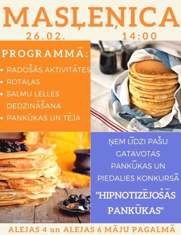 26. februārī plkst. 14.00 Medumos tiks svinēti pavasara sagaidīšanās svētki "Masļeņica". Apmeklētājus sagaida folkloras ansambļa "Rusiči" uzstāšanās, sporta aktivitātes, gardas pankūkas un karsta tēja. Visi laipni aicināti izbaudīt aktīvu atpūtu svaigā gaisā un pavadīt svētdienu ģimenes un draugu lokā.