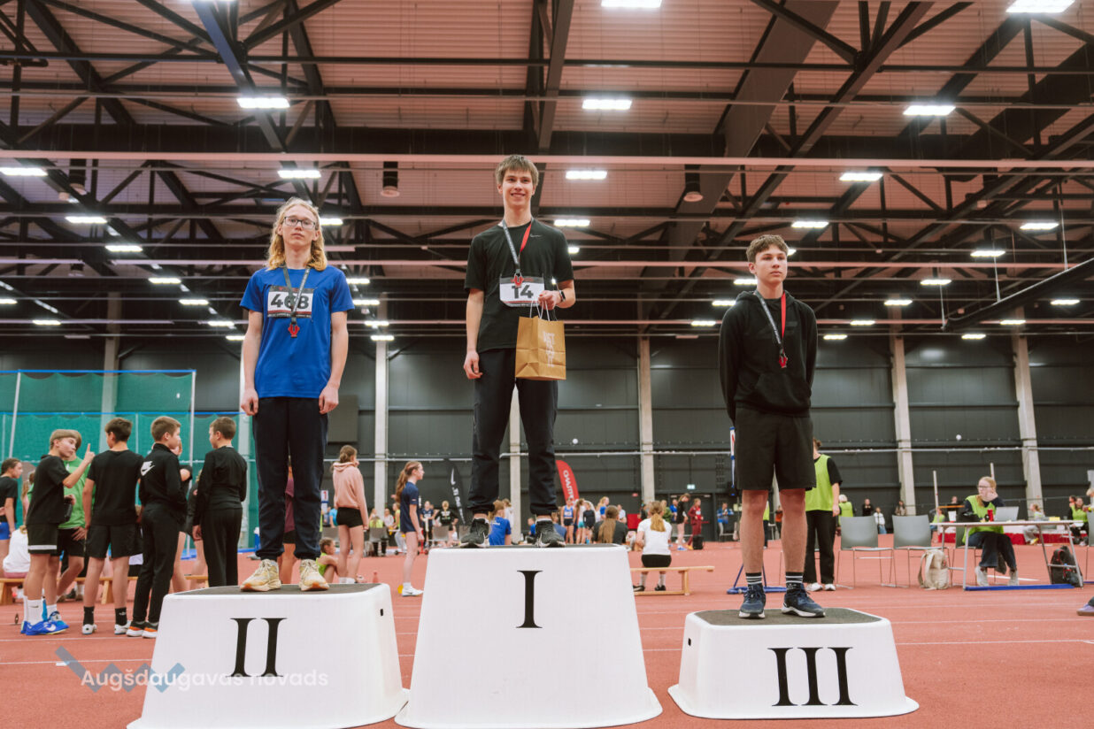 Augšdaugavas novada sporta skolas trenera Dmitrija Hadakova audzēknis Matīss Kovaļevskis 60m un 300m skrējienā finišēja pirmais ar sezonas labāko rezultātu šajā grupā 40.21sek. Ļoti spraigā cīņā Bogdans Meinarts ieguva trešo vietu lodes grūšanā, uzrādot personisko rekordu 11m 49cm.