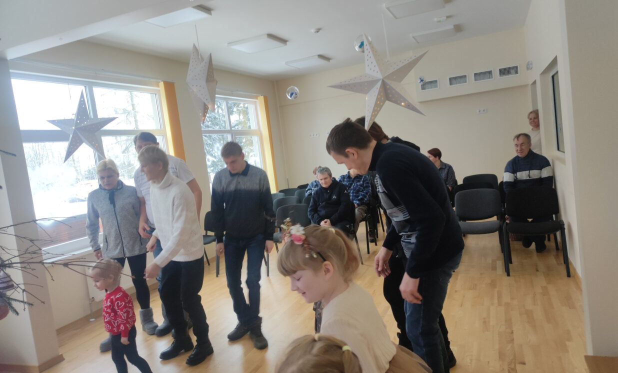 Svētkus aizvadot aicinājām ciemos arī Nīcgales sociālo dzīvokļu iedzīvotājus uz kopīgiem svētkiem. Kopā mēs dziedājām, dejojām, skaitījām dzejoļus, baudījām ziemas priekus, mācījām ezītim Ziemassvētkus svinēt un apmainījāmies ar dāvānām. Vienmēr priecājamies par mūsu kaimiņiem un draugiem, kas nāk ciemos un nekautrējas laisties nebēdnībās kopā ar mums. Paldies sociālo dzīvokļu iedzīvotājiem un sociālajiem darbiniekiem par iespēju pagarināt svētkus!