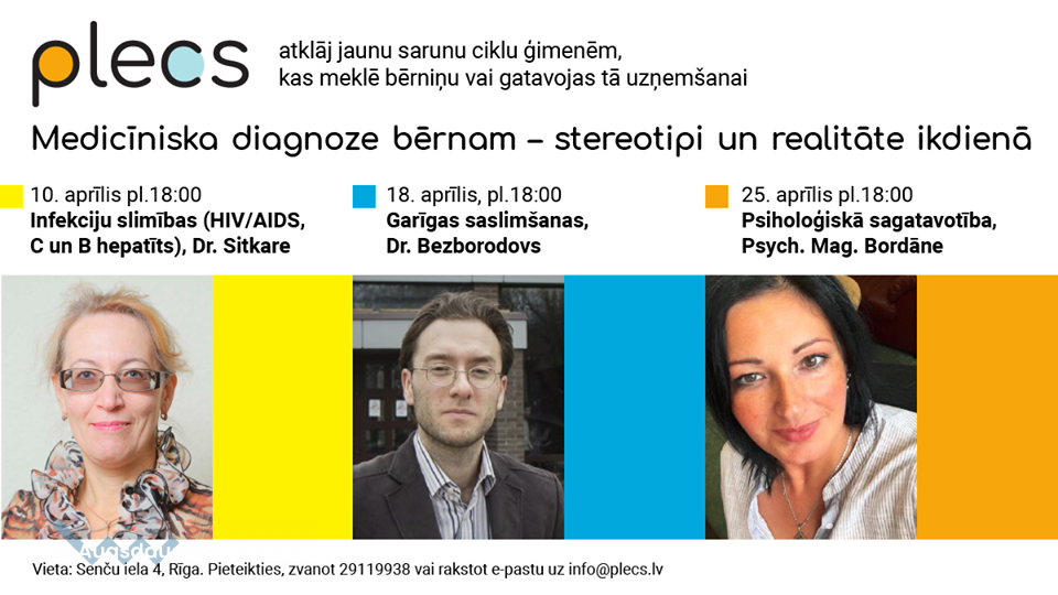 Atbalsta programma Plecs rīko 3 sarunu ciklu, lai skaidrotu, ar ko jāsaskaras ģimenēm, uzņemot ģimenē bērnu ar kādu saslimšanu. Plecs, atbalstot ģimenes, kuras gatavas uzņemt bērnus no bērnu namiem, vērš uzmanību uz medicīniskajām diagnozēm, kas uzstādītas bērniem un ko tās nozīmē bērna aprūpē ikdienā.