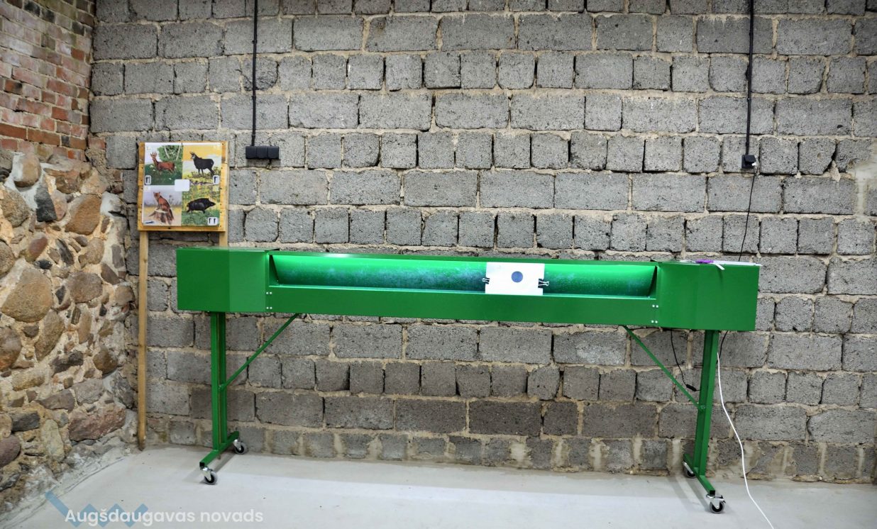 Iekārta zaļā krāsā - "skrejošā meža cūka", palīdz trenēt iemaņas pa kustīgu vai stāvošu mērķi