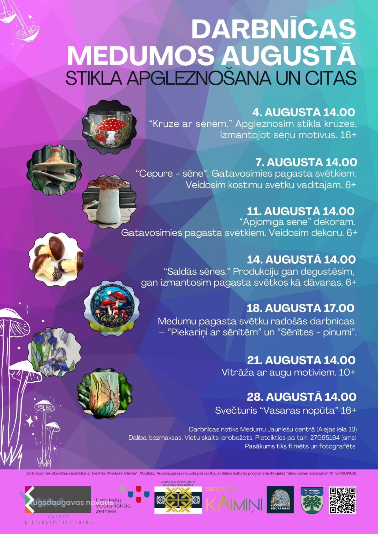 Atbalsta Augšdaugavas novada pašvaldība un Sēlijas kultūras programma (Projekts “Sēņu dzīves noslēpums” Nr. SKP2024/16)