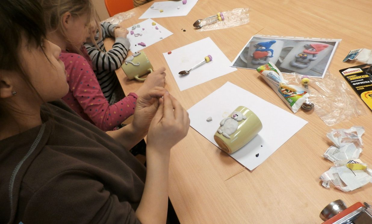 Pavasarī vienmēr gribas kaut ko jaunu un neparastu. Tieši tādēļ tika organizēta meistarklase “Polimērmāla dekors krūzēm”. Meistarklasi vadīja Darja Arzjajeva, stāstot un demonstrējot, kas īsti ir polimērmāls, kā ar to strādāt un kādas fantastisku rezultātu no tas var sasniegt. Divu stundu garumā Darja bija īsts guru un zināšanu konsultants. Bērni aizrautīgi veidoja savas neatkārtojamās krūzes un labprāt ieklausījās Darjas sniegtajos padomos. Laiks, radošajā gaisotnē un bērnu jautājumu bezgalīgajā plūsmā, paskrēja nemanot.