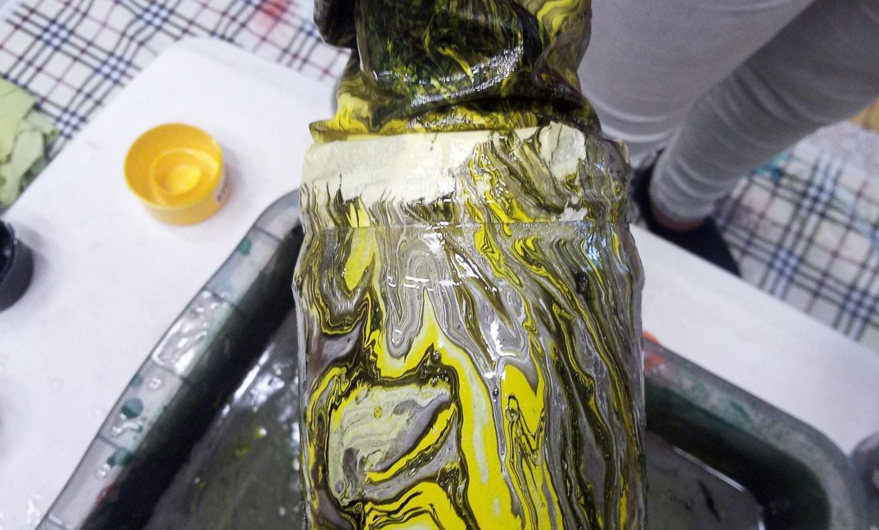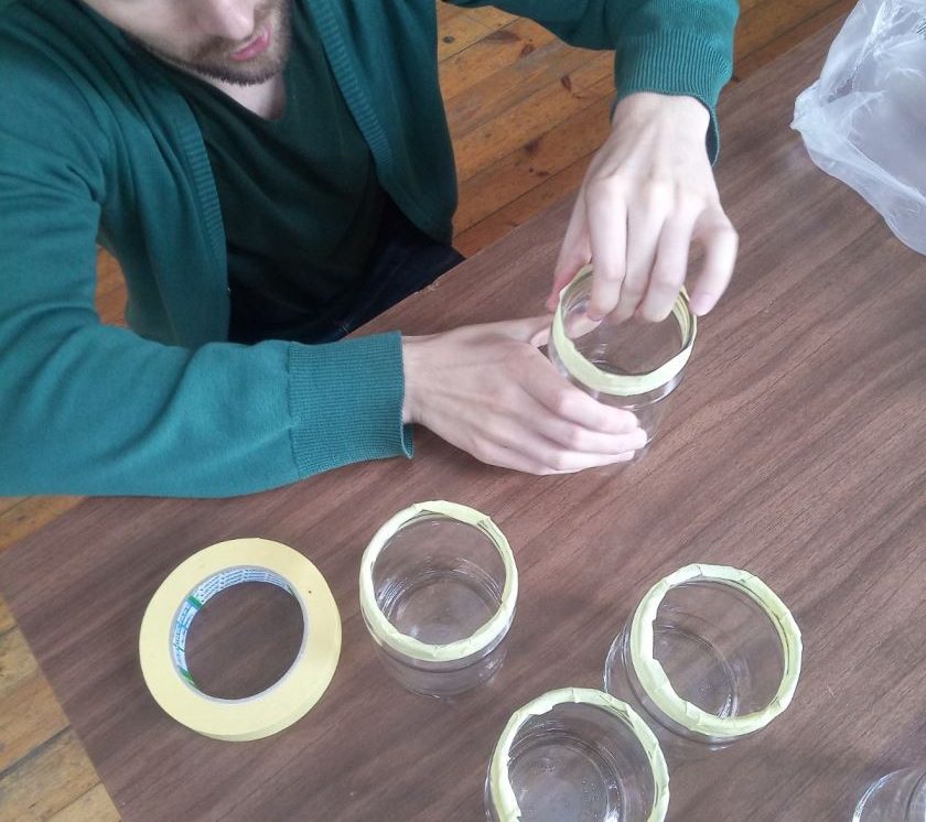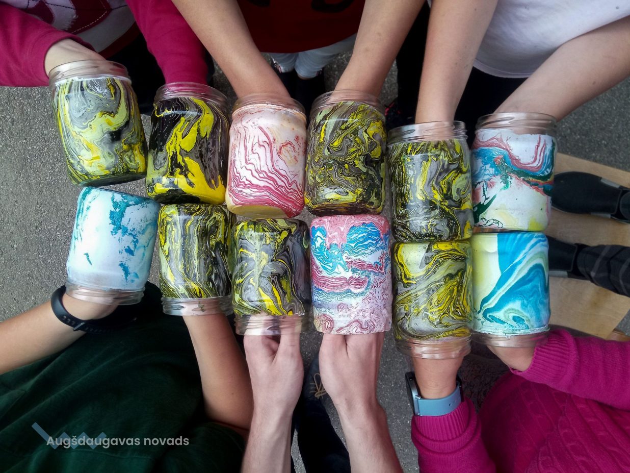Nodarbībā Medumu pagasta Tautas namā divu dienu laikā tika izmēģinātas divu veidu krāsas un viens krāsojamais objekts - stikla burka. Tika izmantota krāsa uz ūdens pamata un universālā krāsa. Visu procesu - materiāla sagatavošana, apstrādājot to ar gruntu, un krāsošana - nodarbības apmeklētāji darīja paši. Veicot dažādus mēģinājumus, visi nodarbības dalībnieki atzina, ka abas krāsas ir interesantas pielietojumā, kaut arī darba tehnika un rezultāts mazliet atšķiras. Kā arī, ka bija interesanti novērot kā citiem dalībniekiem veicās darboties ar šo tehniku.