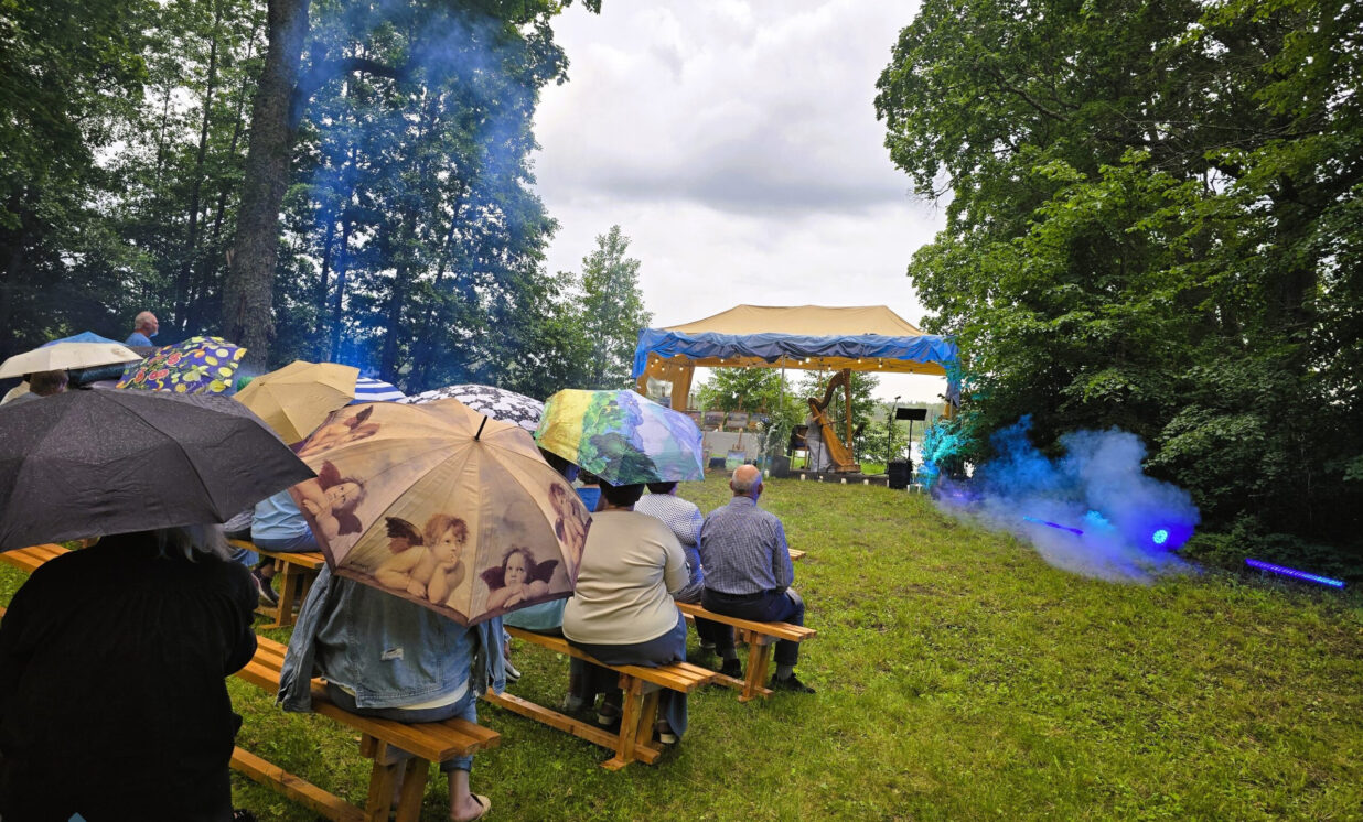 Soprāns Aija Veismane un arfiste Ieva Šablovska aizrāva klausītājus ar smalku un dziļi emocionālu latviešu komponistu mūzikas izpildījumu. Arfas skaņas viegli saplūda ar viļņu čalošanu un vēja pieskārieniem. Koncerta vizuālais brīnums – zilie dūmi un gaismas spēles, piešķīra vakaram sapņainu noskaņu. Klausītāji varēja ne tikai baudīt mūziku, bet arī nogaršot tauriņu zirņu ziedu zilo tēju – smalku un simbolisku pieskārienu kopējai noskaņai. Kopīgi veidotie piemiņas pušķīši ļaus saglabāt šo vakaru atmiņā vēl ilgi. Paralēli koncertam bija skatāma Jeļenas Ondzules akvareļu izstāde, kur māksliniece caur gaismu un ūdens toņiem attēloja Sēlijas ainavu dvēseli.