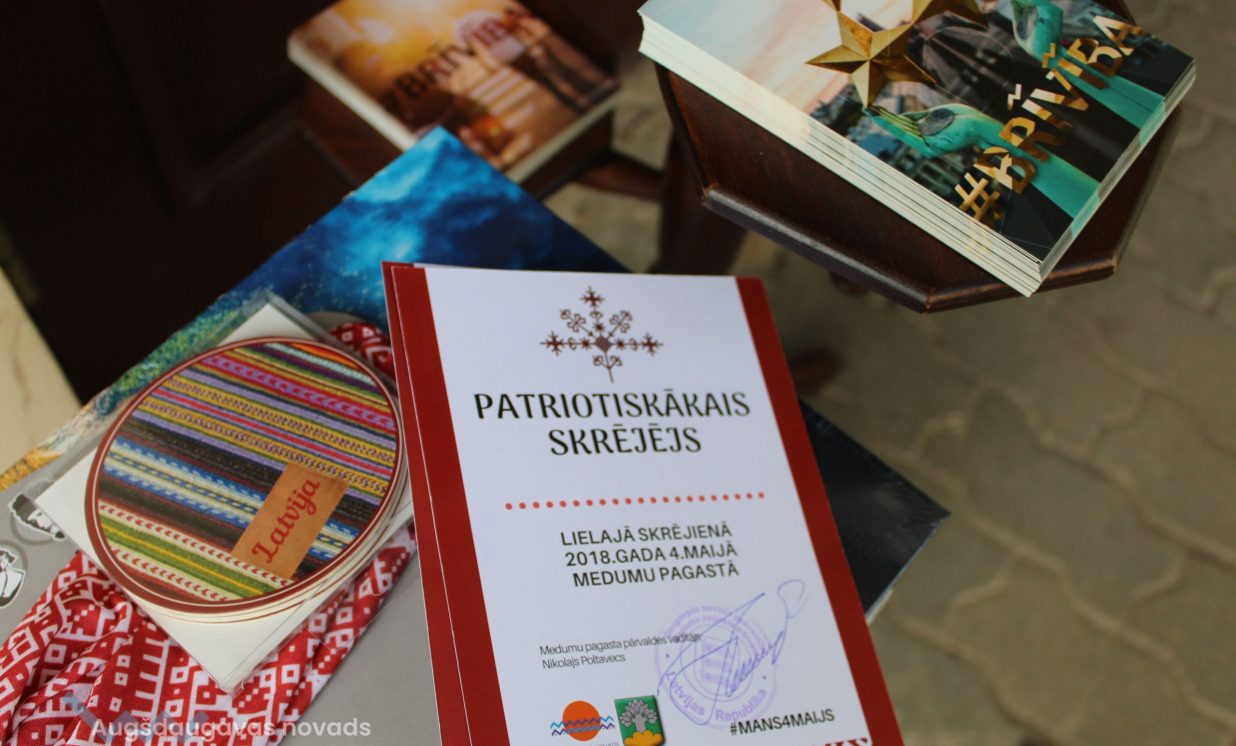 Paralēli notika arī reģistrācija jaunam ieviesumam skrējienā - konkursam par patriotiskākā skrējēja titulu pieaugušo un bērnu starpā. Tas tika organizēts ar mērķi veicināt dalībniekus izpaust patriotismu vizuālajā izskatā. Kaut arī tas bija jauninājums, daudzi dalībnieki ar interesi bija sagatavojušies šim konkursam - tajā piedalījās 12 dalībnieki, kuru starpā bija arī kuplas ģimenes. Un šogad, pēc visu dalībnieku izvērtēšanas, šajā konkursā uzvarēja Kurpnieku un Petkunu ģimene. Viņi savā īpašumā ieguva ļoti patriotiskas balvas, kuras sarūpēja Medumu pagasta pārvaldes un Latvijas simtgades birojs.