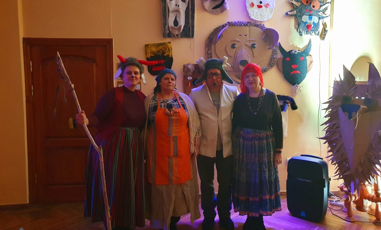 Sākām ziemas padzīšanu ar Meteņu masku izstādes atklāšanu. Vēl janvārī pavadījām divas dienas veidojot maskas. Šai izstādei izvēlējāmies mūsu mīļāko tematu – auduma priekšmetu otrreizējo izmantošanu, tāpēc pārstrādājām jau nevajadzīgas mantas un tās pārtapa par burvīgām maskām.