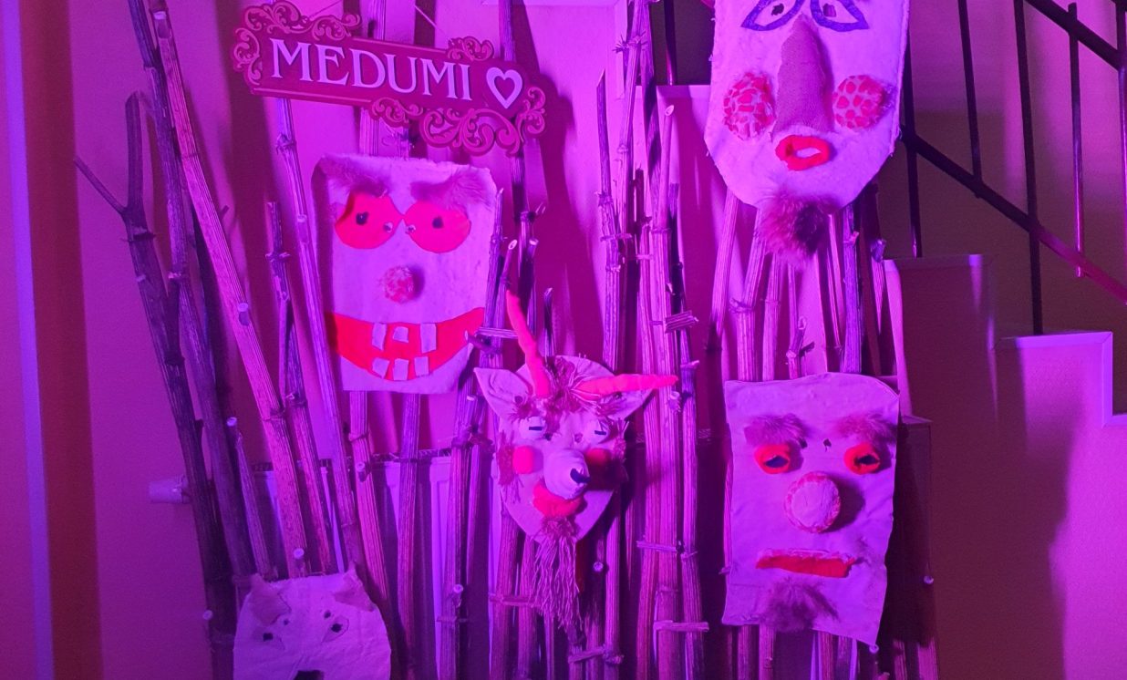 Darbu autori ir Medumu bērni, Medumu rokdarbu pulciņa “Kaleidoskops” rokdarbnieces, kā arī Medumu iespēju pamatskolas audzēkņi. Izstāde būs skatāma visu februāri Medumu Tautas nama foajē.