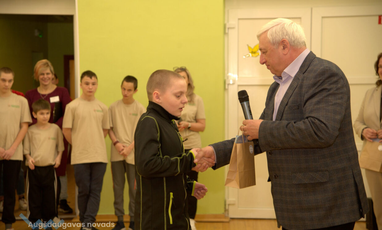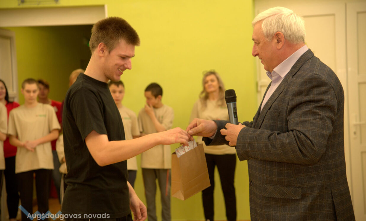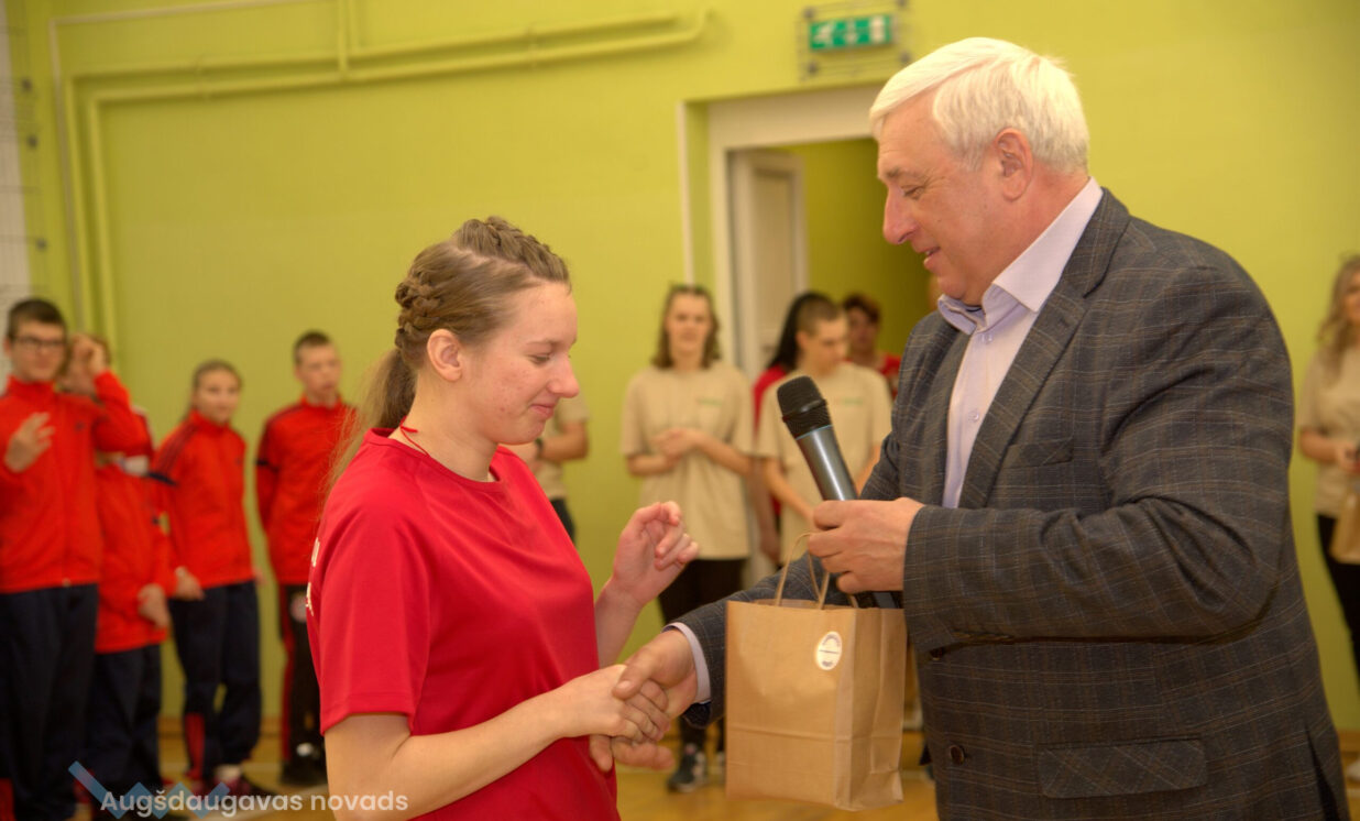 Dalībniekus sveica Augšdaugavas novada pašvaldības domes priekšsēdētājs Arvīds Kucins un novada izglītības pārvaldes vadītāja Janita Zarakovska.
