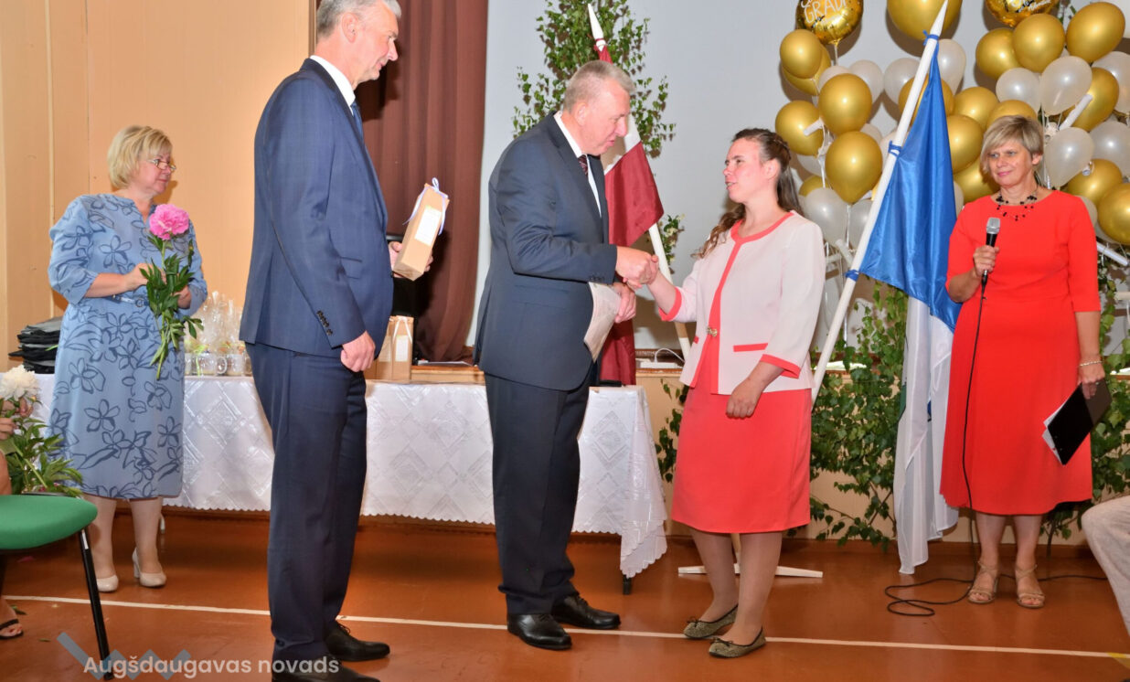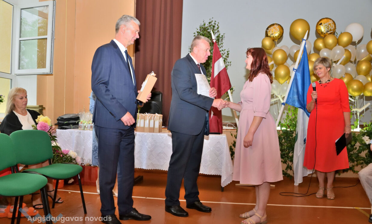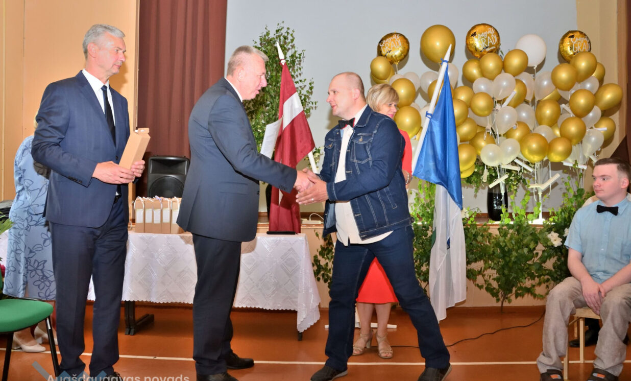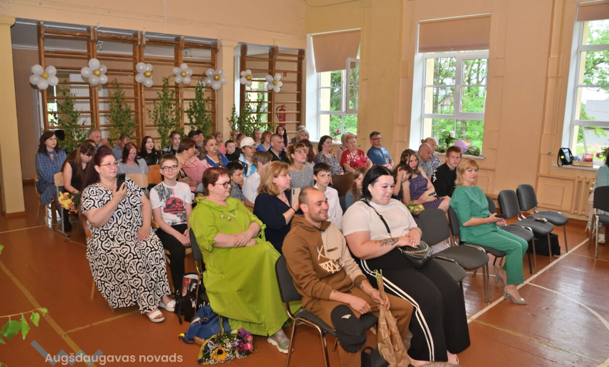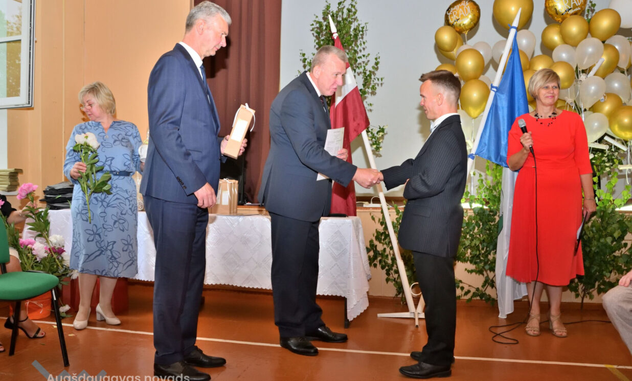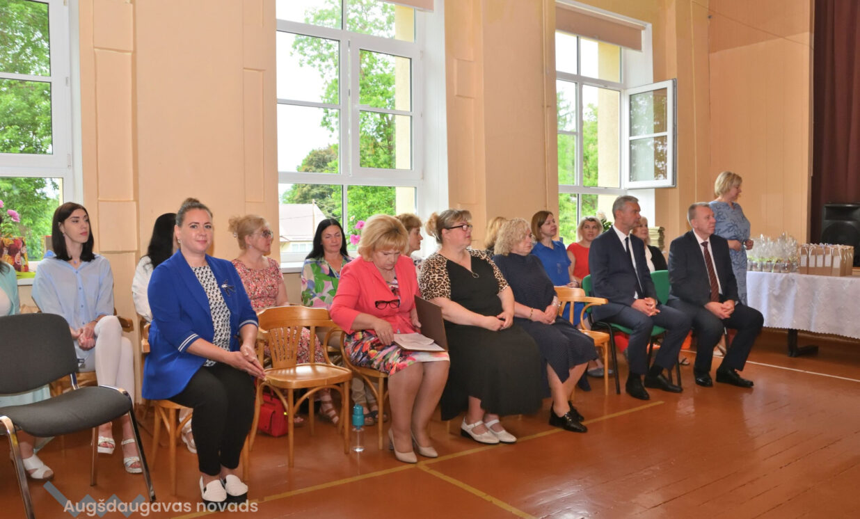 Absolventus, skolotājus un visus klātesošos uzrunāja Augšdaugavas novada pašvaldības domes priekšsēdētāja vietnieks Vitālijs Aizbalts: “Man liels prieks būt šeit – Iespēju skolā! Vai izmantosiet jums dotās iespējas – atkarīgs tikai no jums, absolventiem. Pašvaldība pēc iespējas rūpējas par skolu, piemēram, lieliski darbojas jaunā, automatizētā katlumāja, kura tika uzstādīta pagājušgad. Šogad uzsāksim vēl vienu projektu pamatskolas ēku pārbūvei. Darām visu iespējamo sarežģītajos finansiālajos apstākļos.” V. Aizbalts arī izteica pateicību vecākiem par to, ka viņi iegulda lielus pūliņus bērnu audzināšanā.