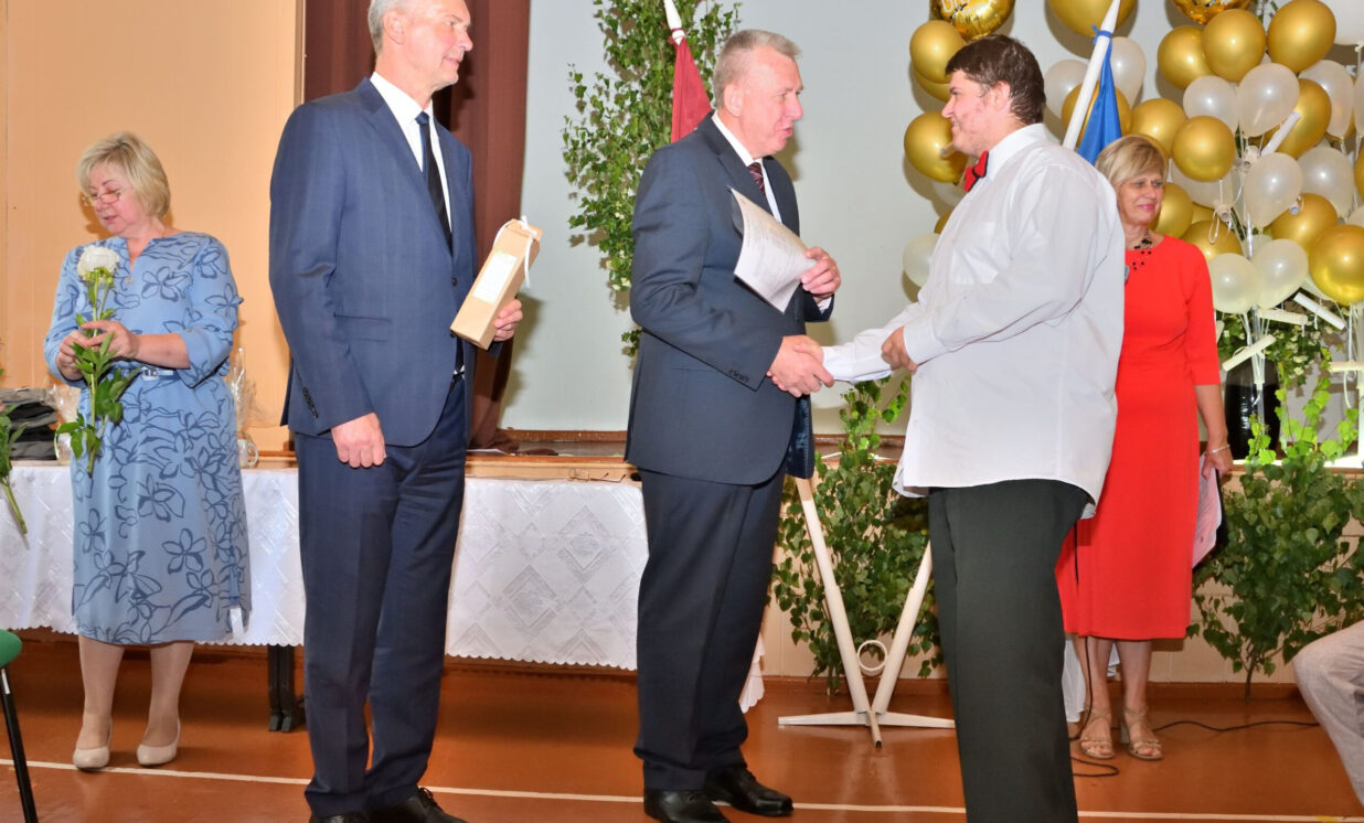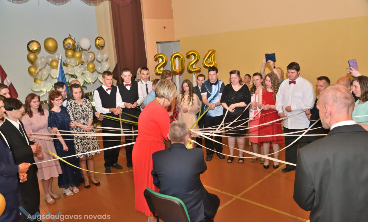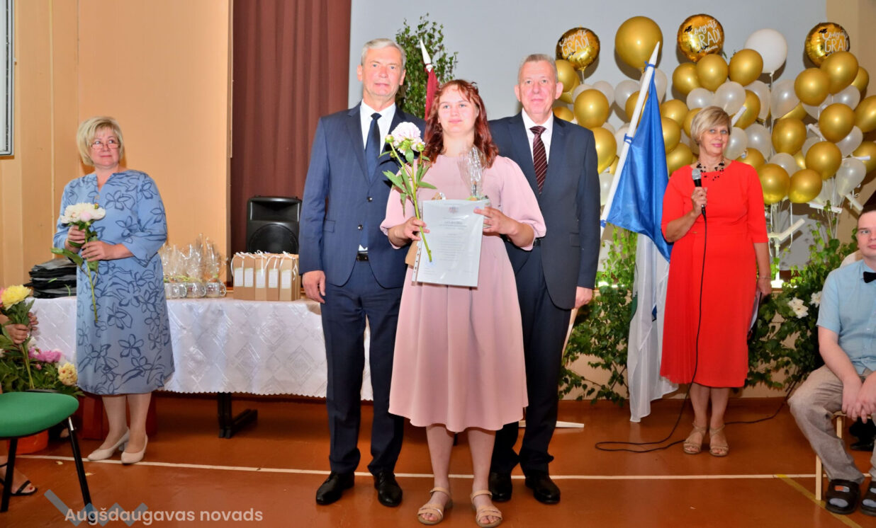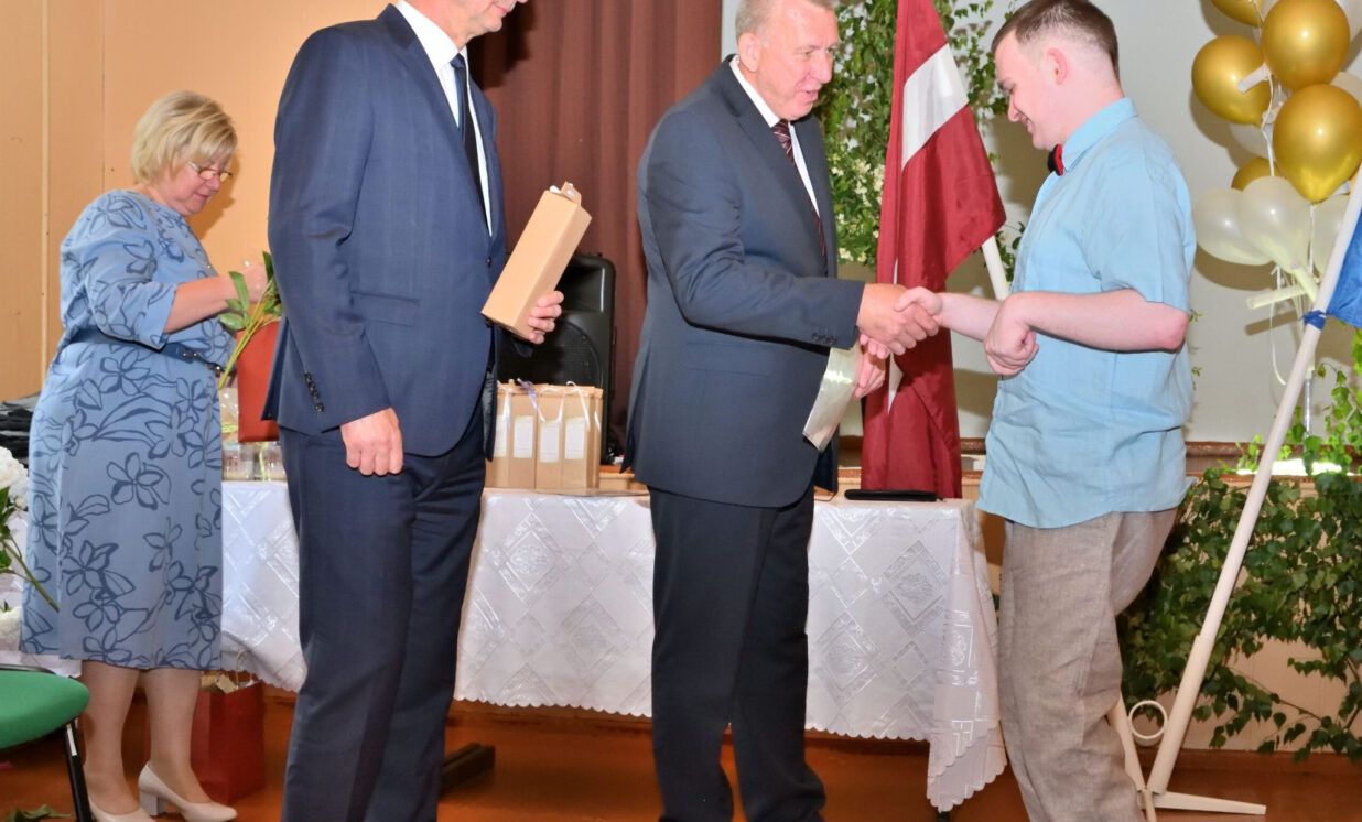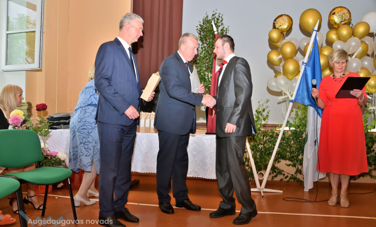 Absolventus, skolotājus un visus klātesošos uzrunāja Augšdaugavas novada pašvaldības domes priekšsēdētāja vietnieks Vitālijs Aizbalts: “Man liels prieks būt šeit – Iespēju skolā! Vai izmantosiet jums dotās iespējas – atkarīgs tikai no jums, absolventiem. Pašvaldība pēc iespējas rūpējas par skolu, piemēram, lieliski darbojas jaunā, automatizētā katlumāja, kura tika uzstādīta pagājušgad. Šogad uzsāksim vēl vienu projektu pamatskolas ēku pārbūvei. Darām visu iespējamo sarežģītajos finansiālajos apstākļos.” V. Aizbalts arī izteica pateicību vecākiem par to, ka viņi iegulda lielus pūliņus bērnu audzināšanā.