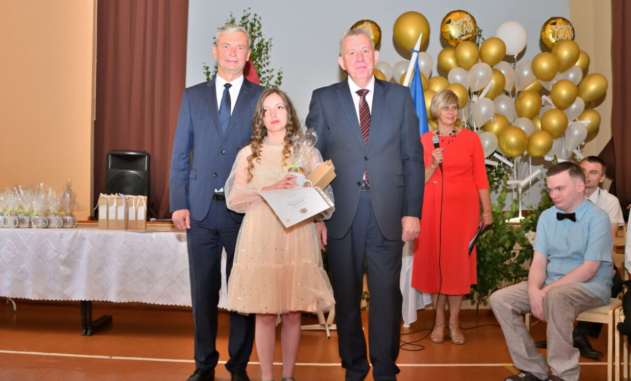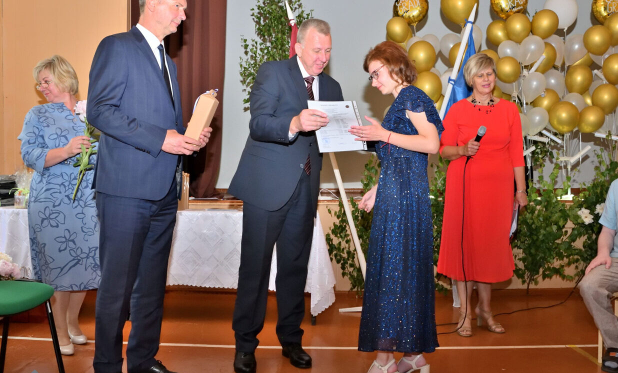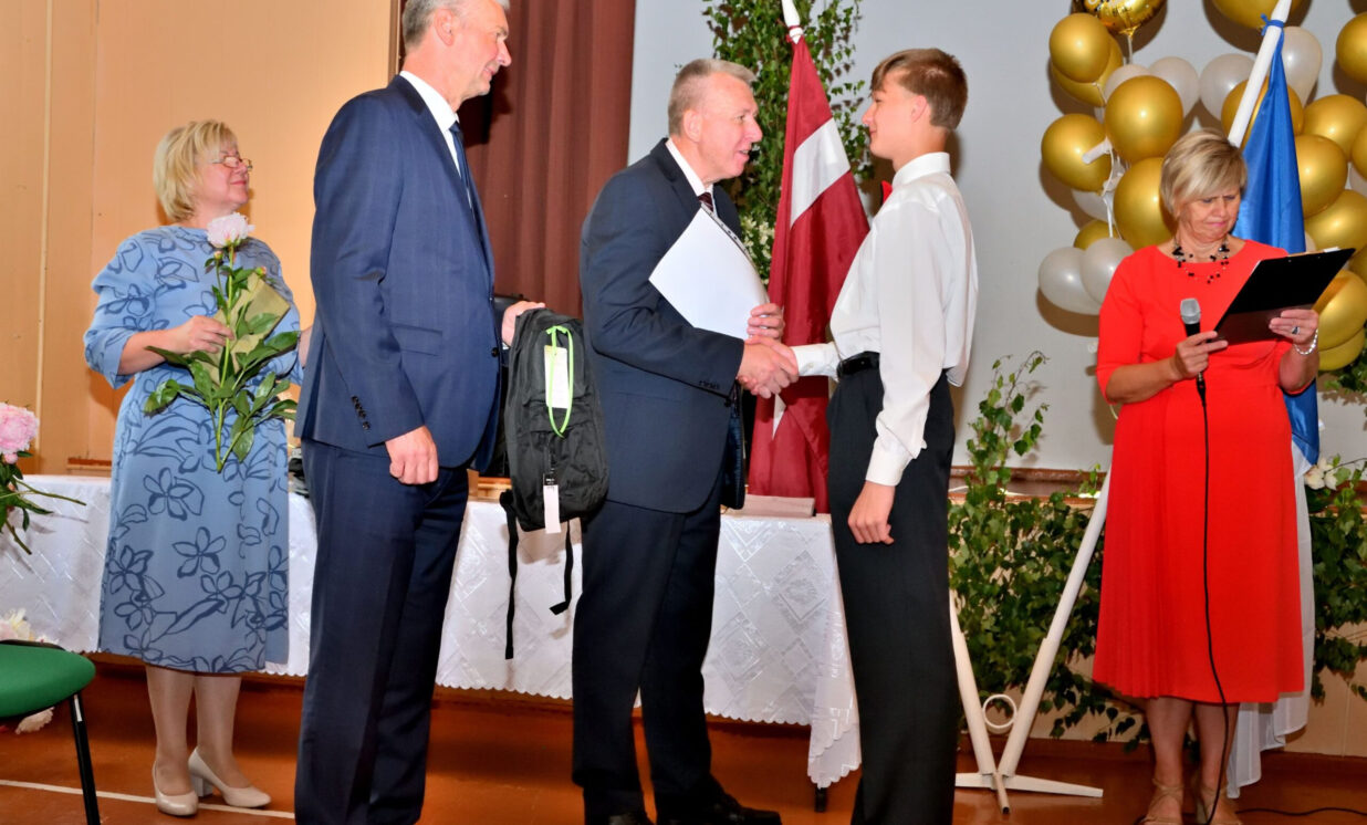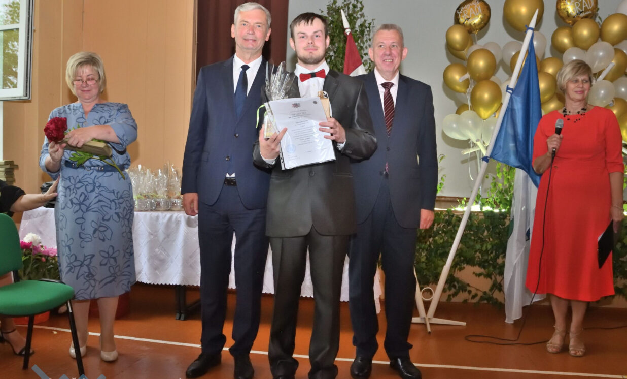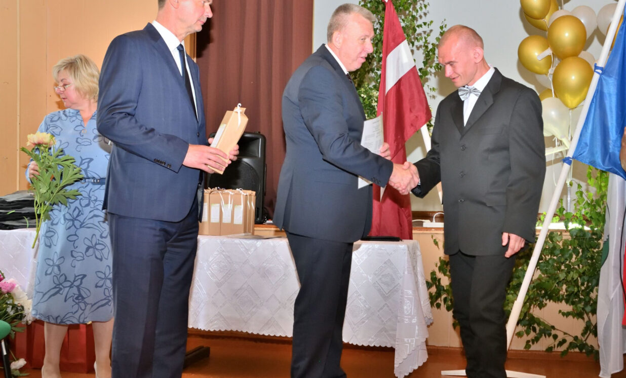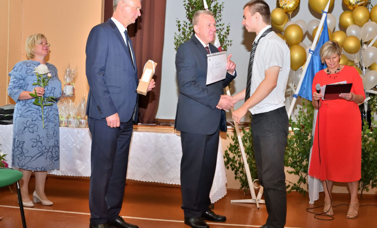 Absolventus, skolotājus un visus klātesošos uzrunāja Augšdaugavas novada pašvaldības domes priekšsēdētāja vietnieks Vitālijs Aizbalts: “Man liels prieks būt šeit – Iespēju skolā! Vai izmantosiet jums dotās iespējas – atkarīgs tikai no jums, absolventiem. Pašvaldība pēc iespējas rūpējas par skolu, piemēram, lieliski darbojas jaunā, automatizētā katlumāja, kura tika uzstādīta pagājušgad. Šogad uzsāksim vēl vienu projektu pamatskolas ēku pārbūvei. Darām visu iespējamo sarežģītajos finansiālajos apstākļos.” V. Aizbalts arī izteica pateicību vecākiem par to, ka viņi iegulda lielus pūliņus bērnu audzināšanā.