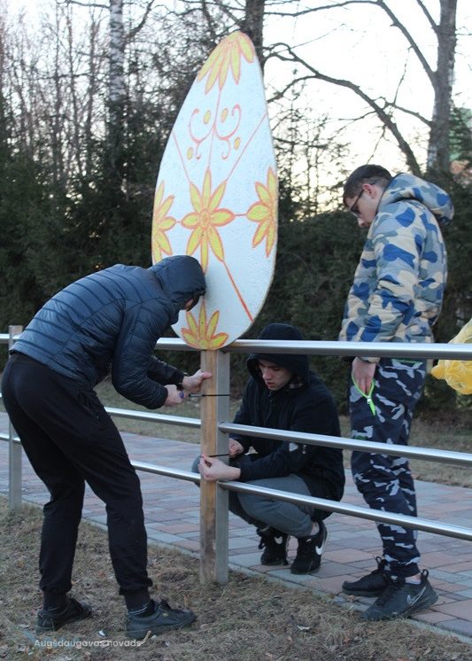 Medumu jaunieši izrotā pagastu ar Lieldienu dekoriem