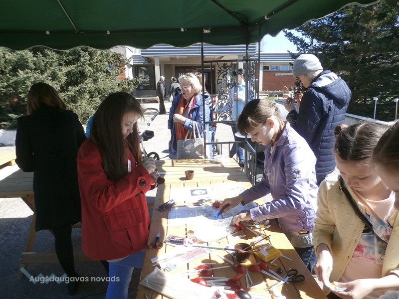 Nevarēja iztikt arī bez svētkiem un došanos ciemos pie kaimiņiem. Ar jautriem uzstāšanās numuriņiem mūsu puiši un meitenes bija Sventē un Skrudalienā, kur notika tematiskie vakari, bet Demenē, kur mēs vadījām radošo darbnīcu Baltā galdauta svētkos, visi varēja no vienreizējās lietošanas karotēm uztaisīt sev divus Latvijas dabas simbolus: divpunktu mārīti vai kumelīti.
