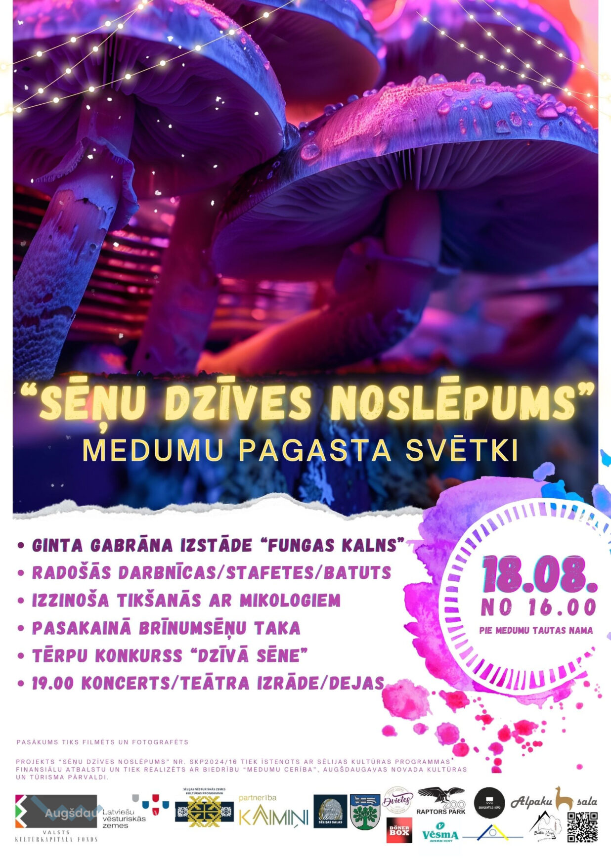 Projekts “Sēņu dzīves noslēpums” Nr. SKP2024/16 tiek īstenots ar Sēlijas kultūras programmas finansiālu atbalstu un tiek realizēts ar biedrību “Medumu Cerība”, sadarbībā ar Augšdaugavas novada Kultūras un Tūrisma pārvaldi