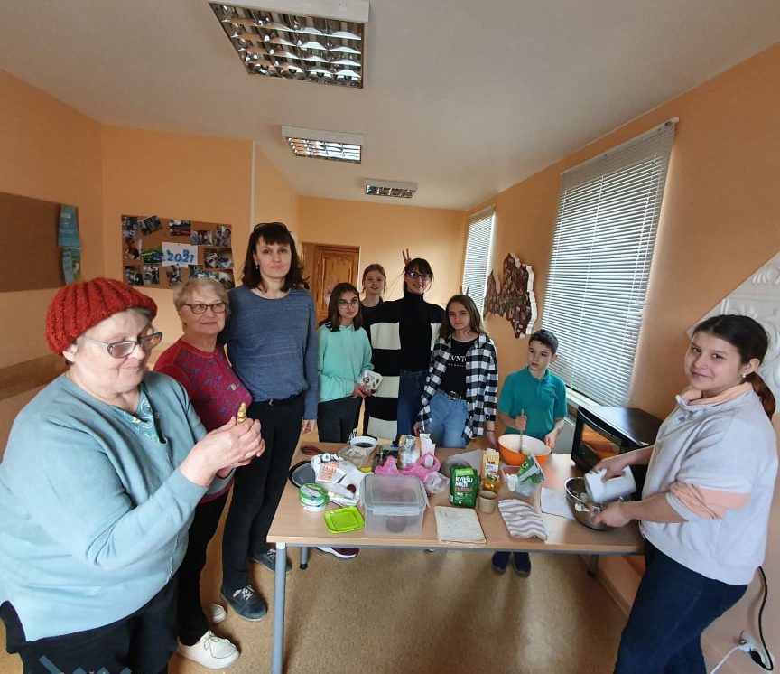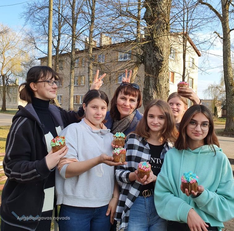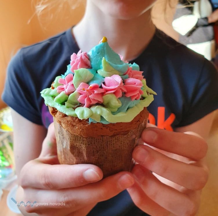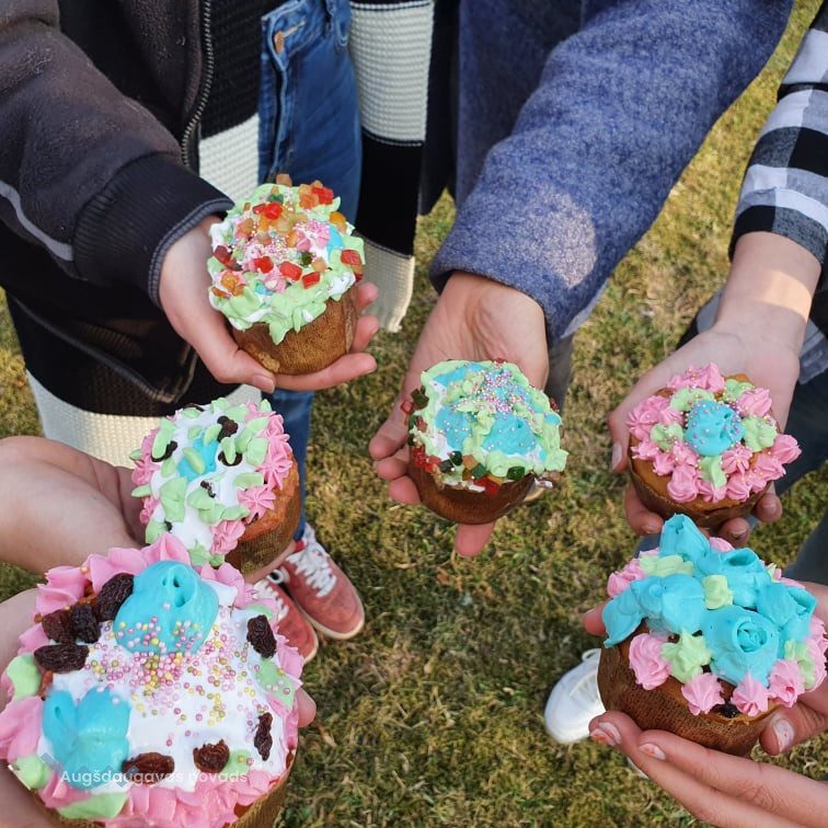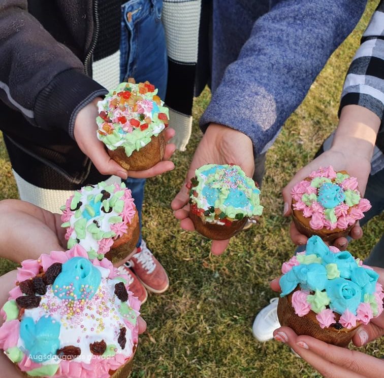 Meistarklases laikā kopā ar jauniešiem un pieredzējušām saimniecēm mēs gatavojām mūsdienīgos kuļičus . Saimnieces dalījās ar savām tradicionālām receptēm un tradīcijām. Pagatavojām kuļičus, izrotājām tos ar dažādiem krēmiem, kā arī iedzērām tēju ar tikko sagatavotiem gardumiem. Katrs paņēma sev līdzi kuļiču, lai būtu gaišas Lieldienas.