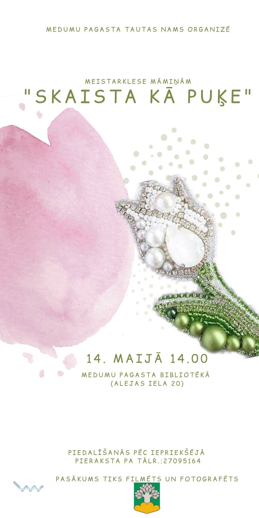14. maijā plkst. 14:00 Medumu pagasta bibliotēkā, Alejas ielā 20, notiks pasākums veltīts Mātes dienai.