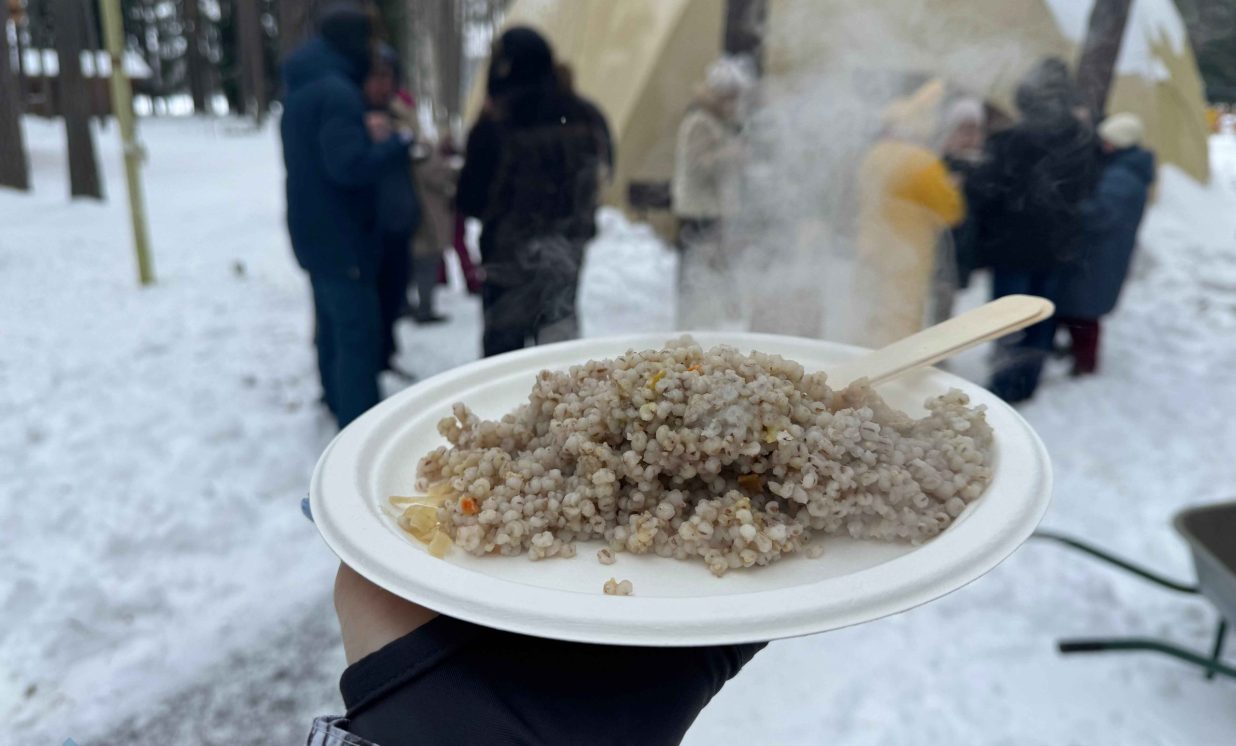 Pasākumā tika nodrošināta siltu tēja, uz ugunskura gatavota putru un gardas pankūkas. Aktivitāšu dalībnieki tika cienāti ar konfektēm, āboliem un lielām barankām.