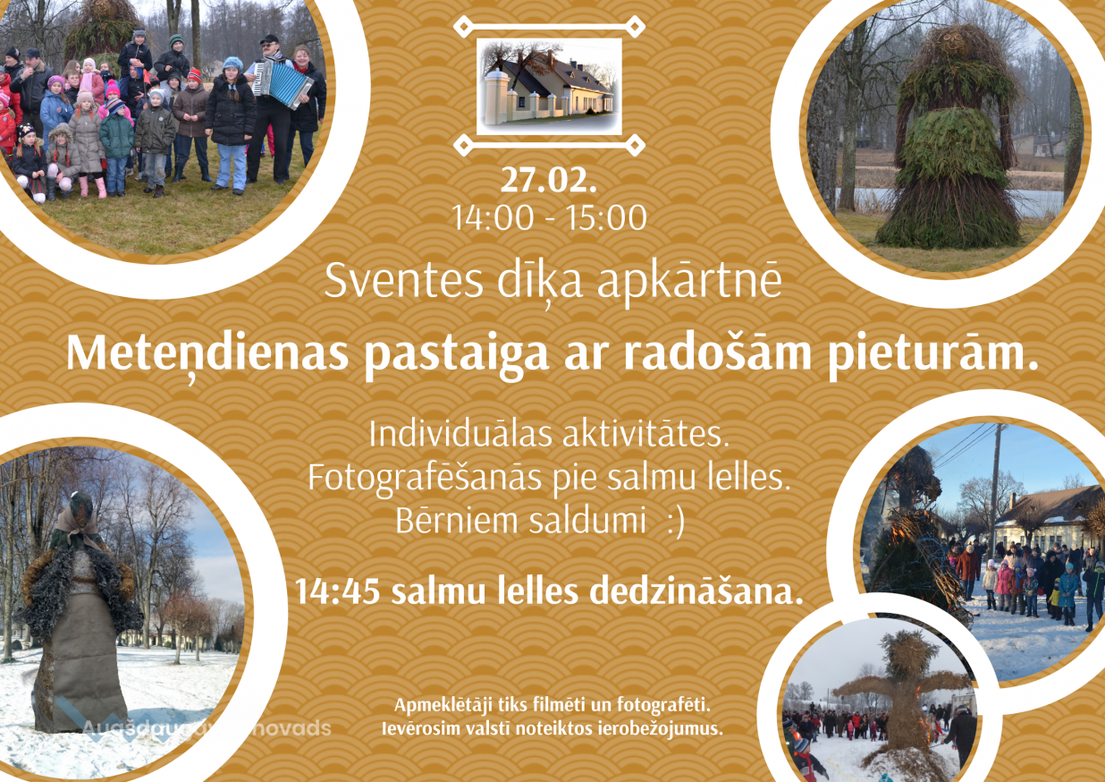 27. februārī, no plkst. 14.00 - 15.00 Sventes dīķa apkārtnē norisināsies "Meteņdienas pastaiga ar radošām pieturām".