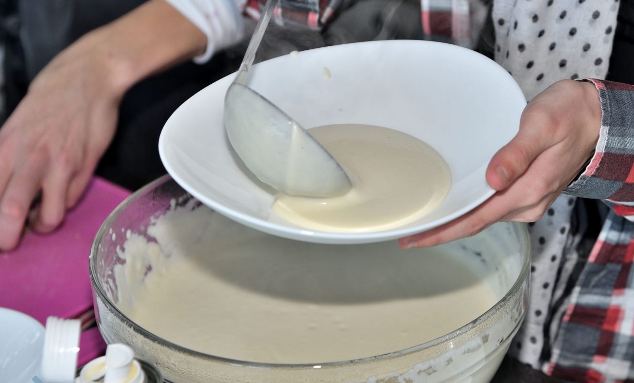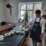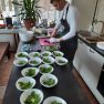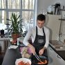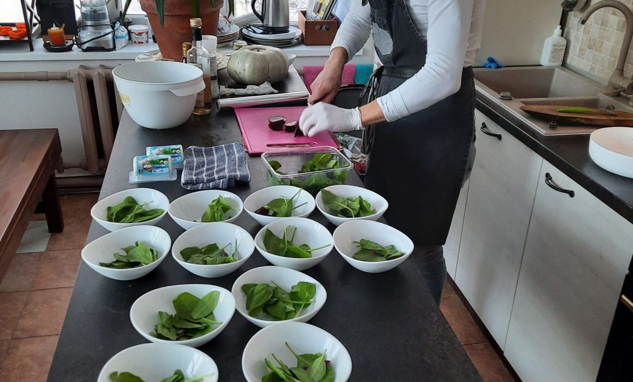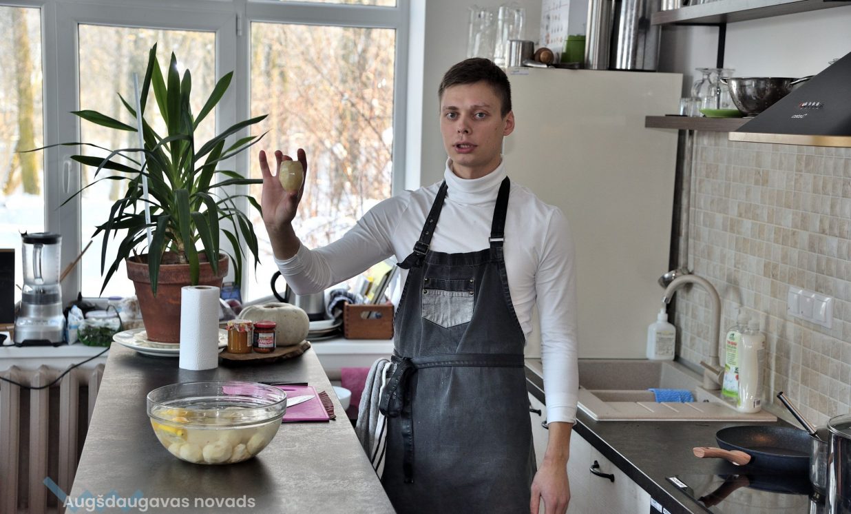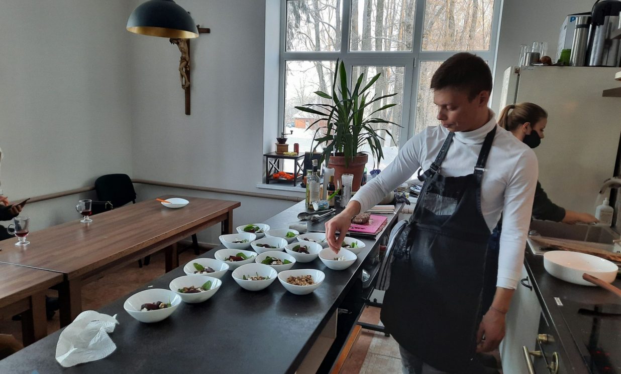Pirmā tapa topinambūru biezzupa. Gatavošanas procesā klātesošie uzzināja daudzus interesantus un noderīgus knifiņus, kā pareizi sagriezt un apstrādāt produktus, lai tie saglabātu pēc iespējas vairāk vērtīgu uzturvielu, kādas garšvielas un kurā brīdī labāk pievienot ēdienam, lai to nesabojātu, bet tikai uzlabotu garšu.