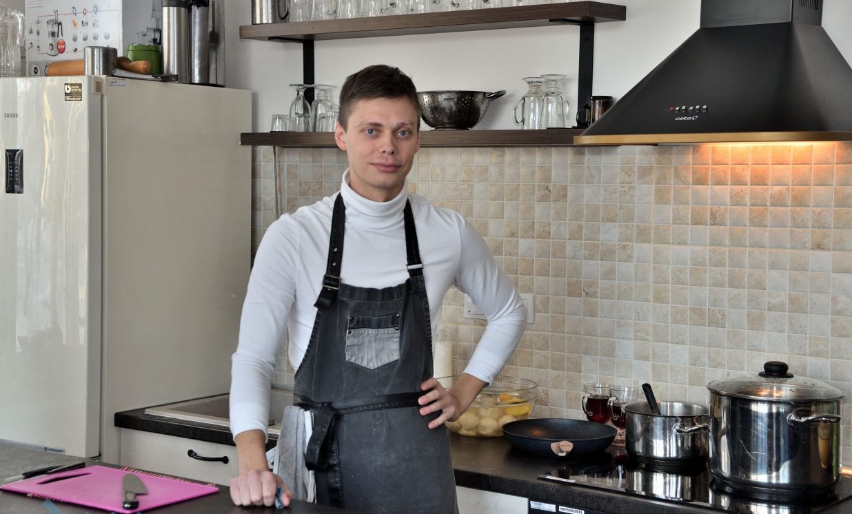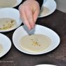 Haralds pamācīja, ka jebkurus dārzeņus zupai sagriež un karstā eļļā ar sāls piedevu apcep, lai tie kļūst ātri mīksti. Tad lej klāt pienu, saldo krējumu, pāris minūtes pavāra, lai uzmet burbuli, un tad sablenderē. Pavārs piekodina pieturēt ar dvieli blendera vāku, lai zupa neizšļakstītos pa visu virtuvi. Lai krēmzupa nebūtu garlaicīgi viendabīga, to pārkaisa ar drupinātiem pistāciju riekstiem un uzpilina lazdu riekstu eļļu.