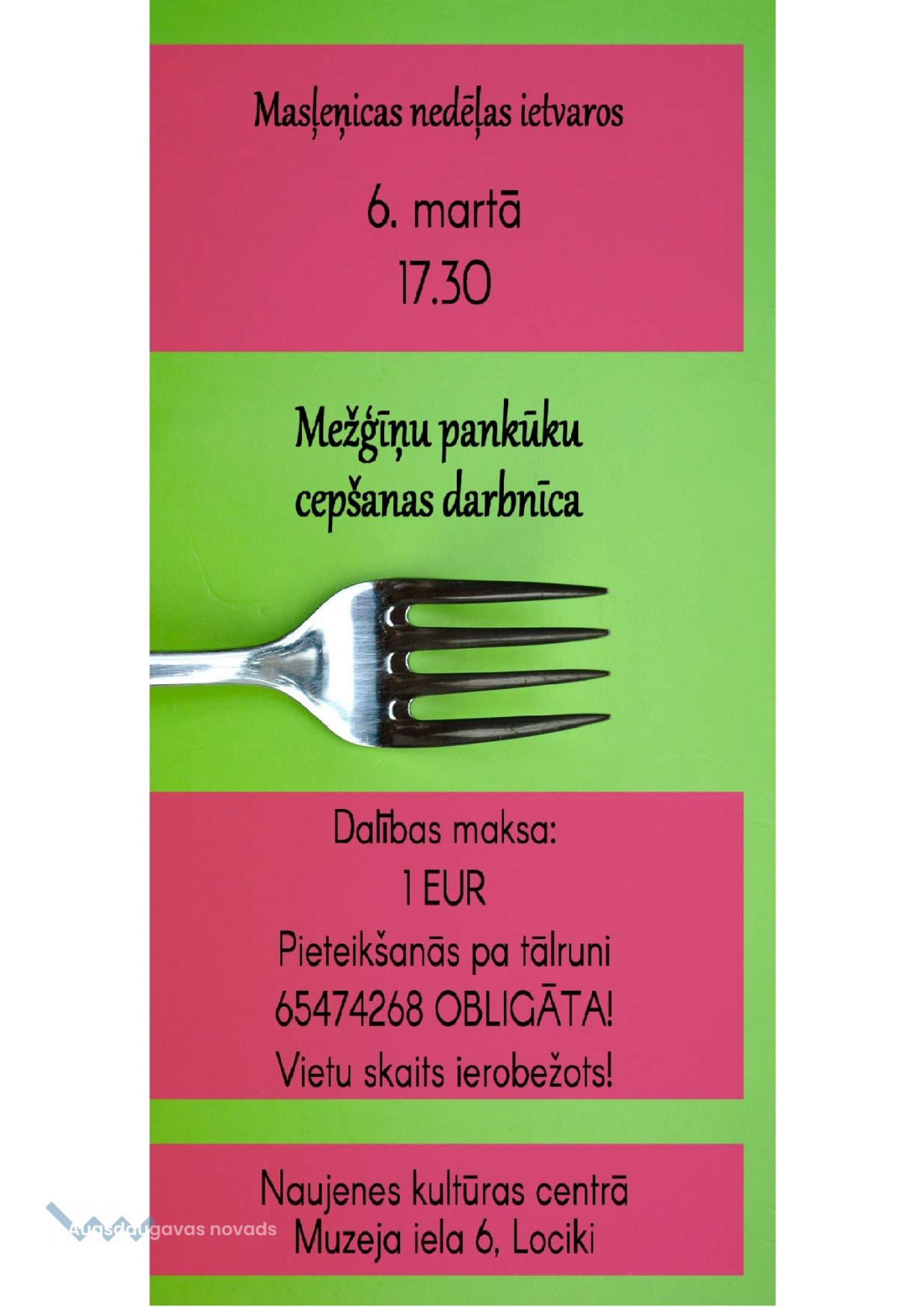 Lai rezervētu sev pankūku “ziedojumiem”, lūgums piezvanīt mums pa tālruni 65474268 un tiekamies trešdien 6. martā plkst. 17.30, Naujenes kultūras centrā. Dalības maksa 1 EUR, VIETU SKAITS IEROBEŽOTS – tāpēc pasteidzies!
