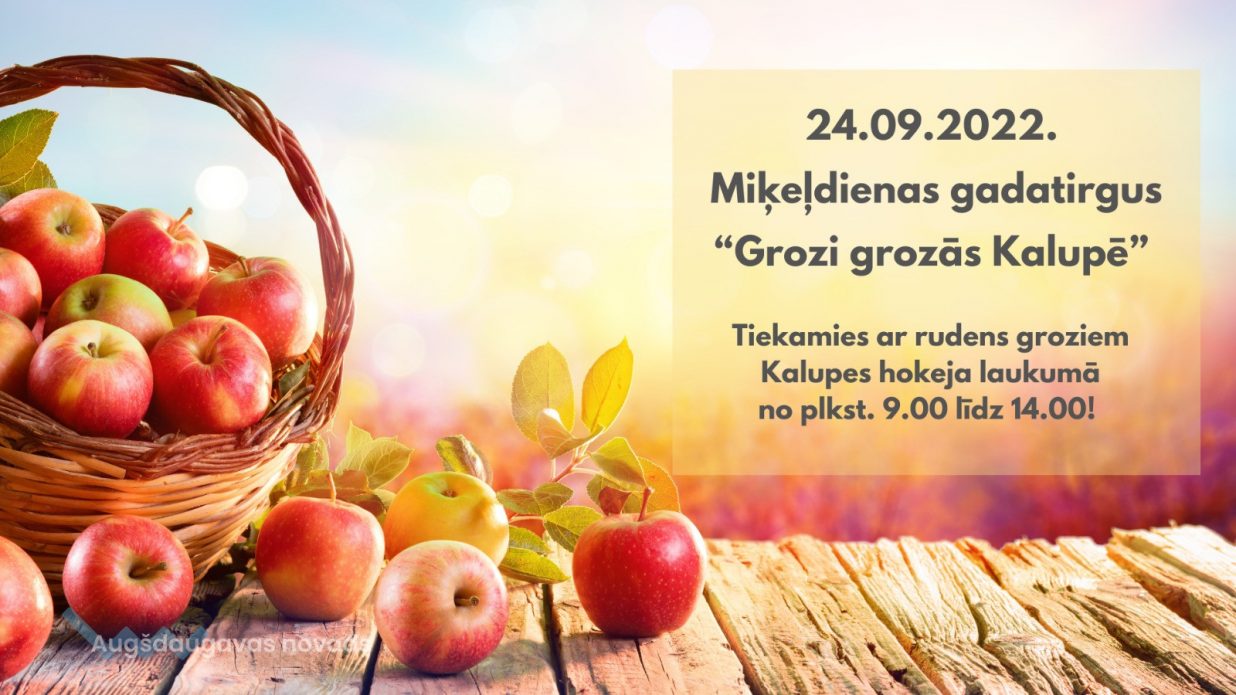 Aicinām 24. septembrī no plkst. 9.00 līdz 14.00 piedalīties Miķeļdienas gadatirgū Kalupē (hokeja laukumā), līdzi ņemot grozu-pilnu vai tukšu. Būs ko pirkt un pārdot, dot un ņemt, svērt, mērīt un mainīt, redzēt un dzirdēt, kā arī baudīt rudens velšu zupu.