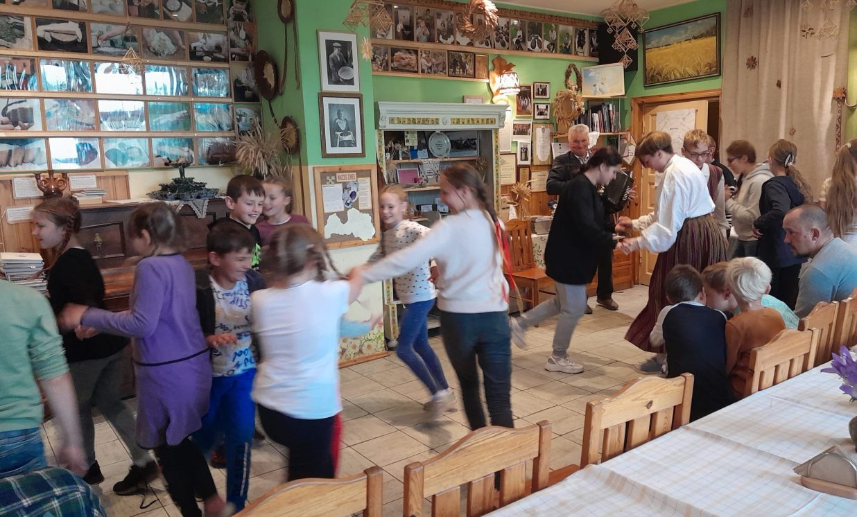 Pēc tam dejotāji piedalījās večerinkā pie Mikeļa babas (Maizes muzeja vadītājas Vijas Kudiņas). Dejotāji un viņu vecāki kopā ar tautas muzikantiem jestri dejoja un dziedāja. Nogaršoja maizīti un baudīja siltu rudens zupu.