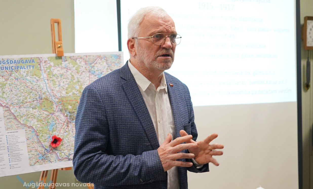 Daugavpils Universitātes Latgales pētniecības institūta un informācijas centra “Latgales dati” vadītājs, profesors Henrihs Soms pastāstīja klātesošajiem, kādus avotus viņš izmanto, meklējot informāciju par 1915.-1917. gada notikumiem.
