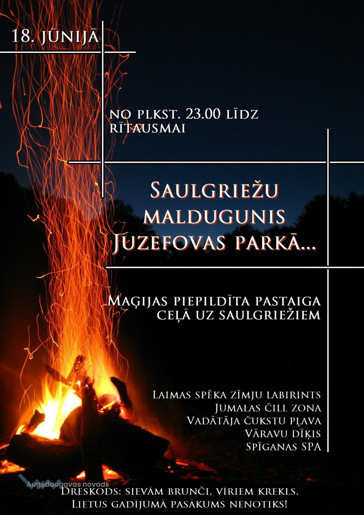 Naujenes pagastā, Juzefovas parkā, 18. jūnijā no plkst. 23.00 līdz rītausmai (pasākums ilgs aptuveni 4 stundas), pašās maģiskākajās un mistiskākajās diennakts stundās dodies ceļā uz Saulgriežiem…