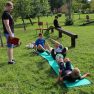 Otrajā dienā notika komandu sacensības, kurās bija tādas interesantas disciplīnas kā “Burbuļus golfs”, kur vajadzēja pēc iespējas ātrāk izpūst ziepju burbuli cauri riņkim, “Veiklās karotes”, “Bizes pīšana”, “Vilciņu griešana”, kur katram dalībniekam sevi vajadzēja ietīt virvē un pēc tam iztīties no tās, “Ping pong stafete”, kur driblējot ping ponga bumbinu ar raketi jānodod stafete nākamajam dalībniekam. Īpaši spraiga izvērtās “Kājbumba”, kur sēžot uz zemes bija ar kājām jāsatver bumba un apgriežoties tā jānodod nākamajam dalībniekam. Kā izrādījās tas bija pārbaudījums komandu vēdera muskuļu izturībai un beigās meiteņu komanda pārspēja puišu komandu. Spraiga izvērtās arī “Pankūku cepšana”, kur pannā pēc iespējas vairāk reižu vajadzēja apgriezt kartona pankūku uzvarētājam to izdarot, 94 reizes! Beigās tika aizvadīta “Stafete” , kas sevī iekļāva lēkšanu ar maisu, bumbiņu šķirošanu un sprintu līdz finišam ar novada cepurīti galvā. Kopumā “Sporta diena” pulcēja ap 30 bērnus, jauniešus un vecākus, bet “Jautrības un veiklības diena” ap 25 dalībniekus. Visi dalībnieki tika pie garšīgām balvām no sacensību organizatoriem.