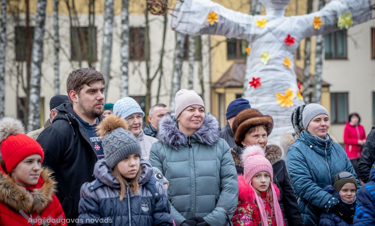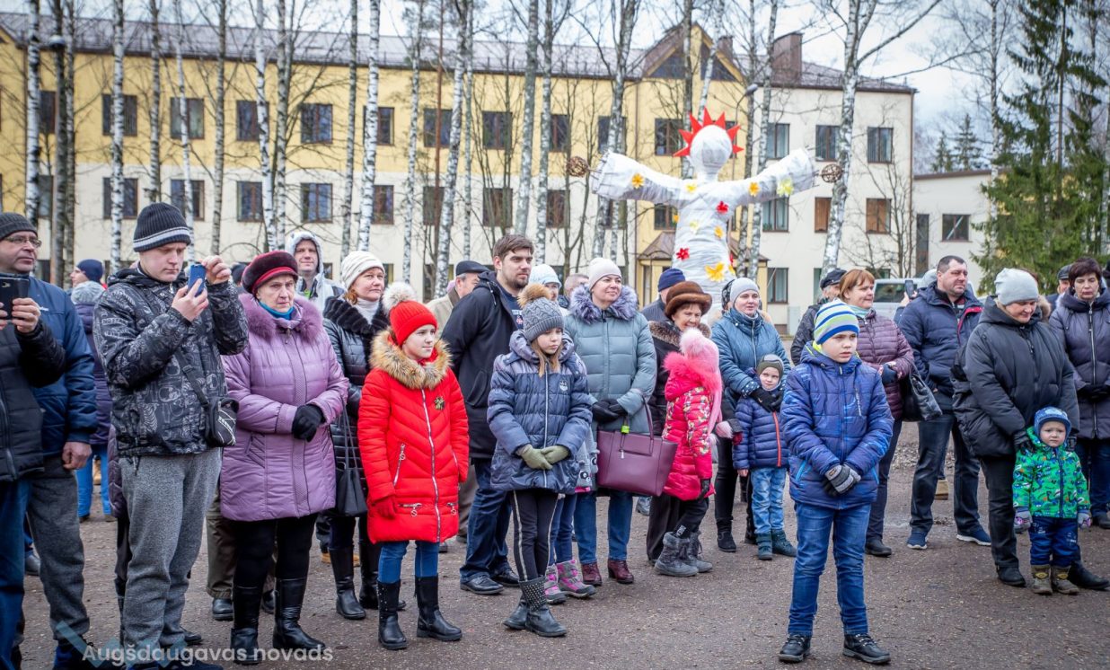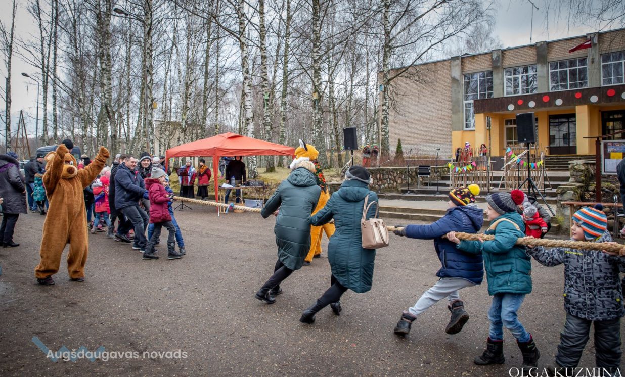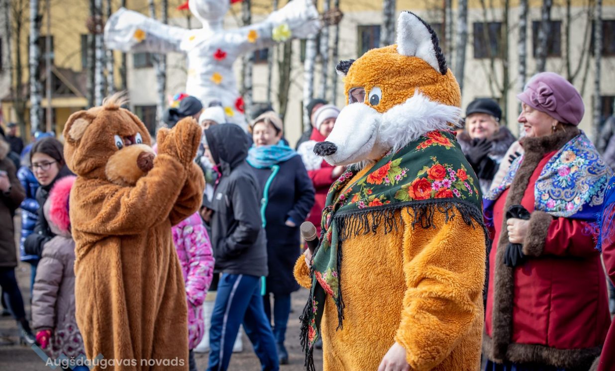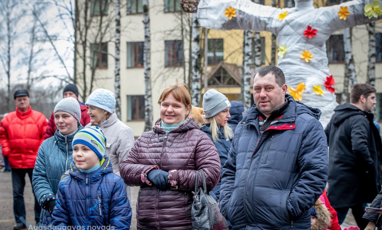 Savukārt 1. martā – pirmajā pavasara dienā - laukumā pie Naujenes kultūras centra Naujenes pagasta iedzīvotāji un ciemiņi lustējās Masļeņicas pasākumā. Pasākuma apmeklētājiem krāsainus un saulainus priekšnesumus dāvāja Naujenes kultūras centra slāvu tradīciju ansamblis “Radenie”, ciemiņi no Robežnieku pagasta vokālais ansamblis “Viktorija” un ciemiņi no Griškānu pagasta kultūras nama čigānu dziesmu ansamblis “Čarger”. Kā nu bez “častuškām” un to izpildītāja Viktora Vaļkovska! Laukuma galvenā skaistule 3,5 metrus garā lelle labprāt fotografējās ar saviem ciemiņiem. Neiztrūka arī jautru izdarību, kokā kāpšanas pēc dāvanām un, protams, pankūku. Bet ko tad mēs te Jums stāstīsim… labāk vienreiz redzēt – aicinām ieskatīties krāšņajā svētku foto galerijā!