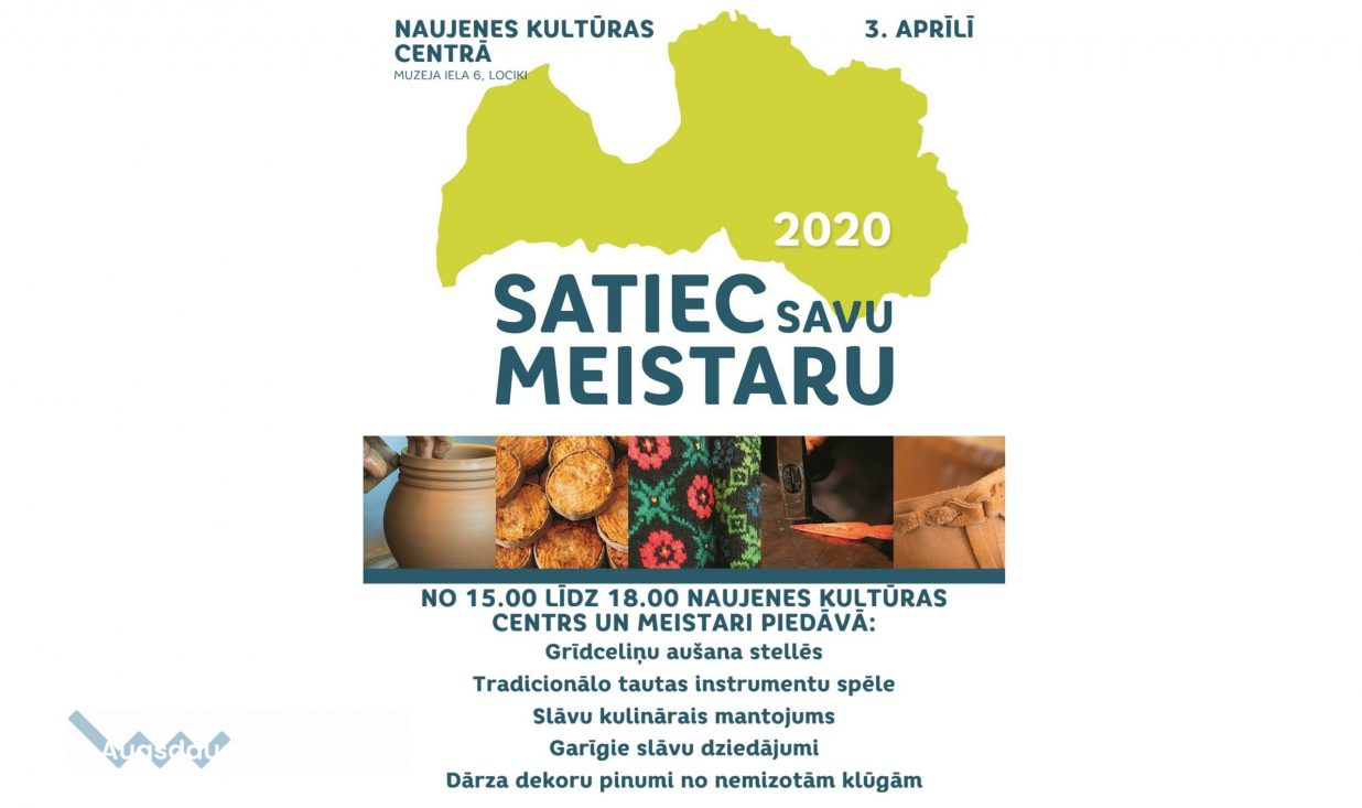 3. aprīlī no plkst. 15.00 līdz plkst. 18.00 Naujenes kultūras centrā varēs tikties ar meistariem un piedalīties šādās darbnīcās: