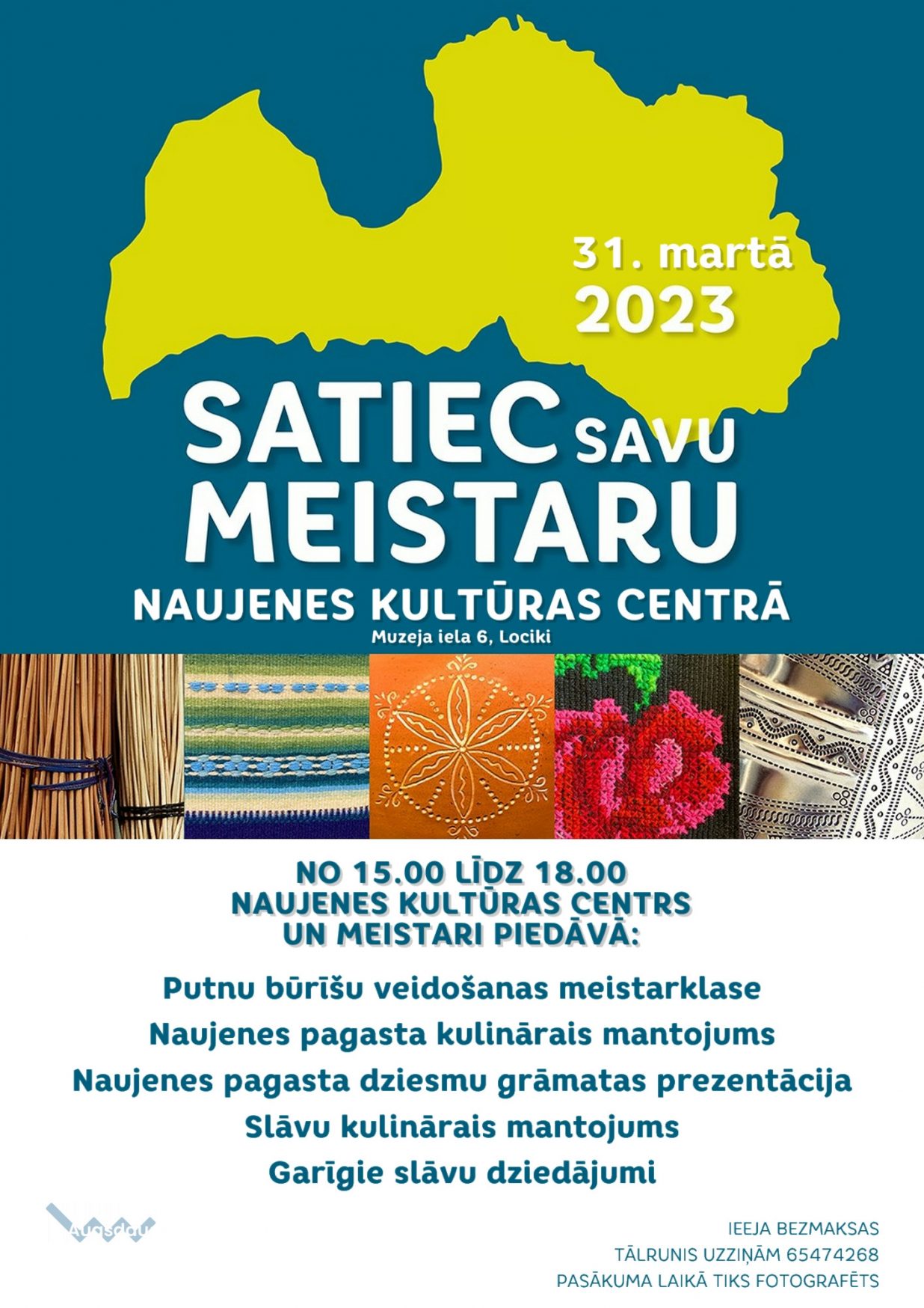 31. martā no plkst. 15.00 līdz plkst. 18.00 Naujenes kultūras centrā varēs tikties ar meistariem un piedalīties: