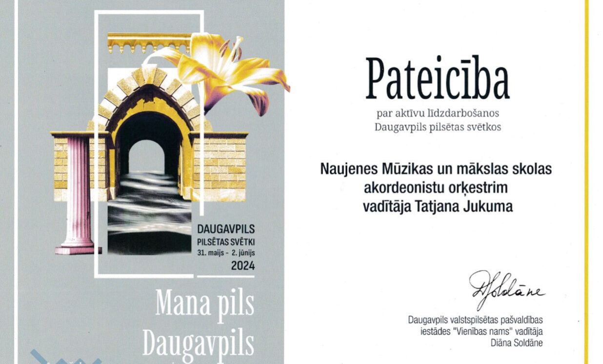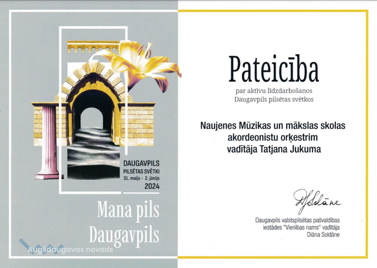 Savukārt, 1. jūnijā, Daugavpils pilsētas svētku ietvaros, Andreja Pumpura skvērā notika IV Latvijas akordeonistu orķestru salidojums, kurā piedalījās 18 akordeonistu orķestri, tajā skaitā Naujenes Mūzikas un mākslas skolas akordeonistu orķestris, kura vadītāja ir Tatjana Jukuma.