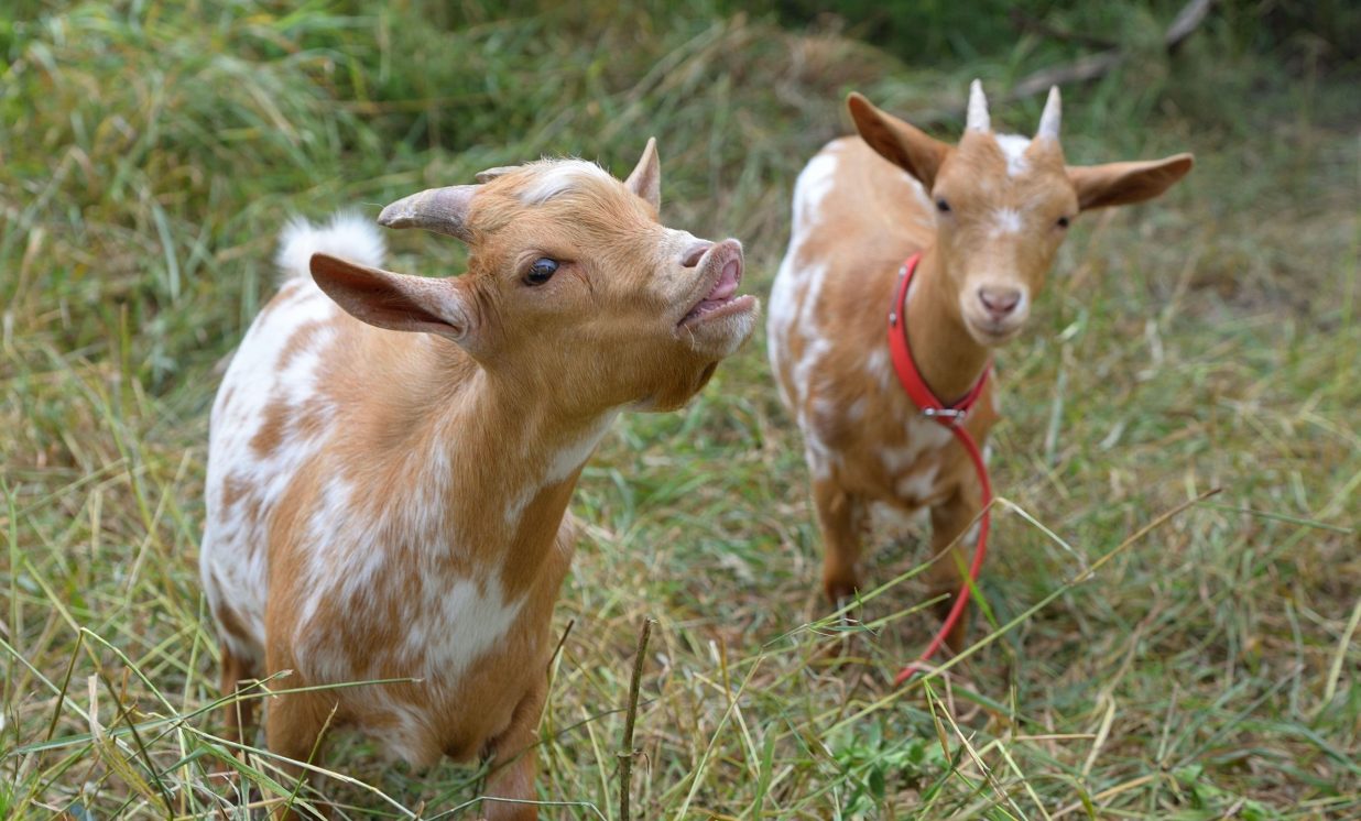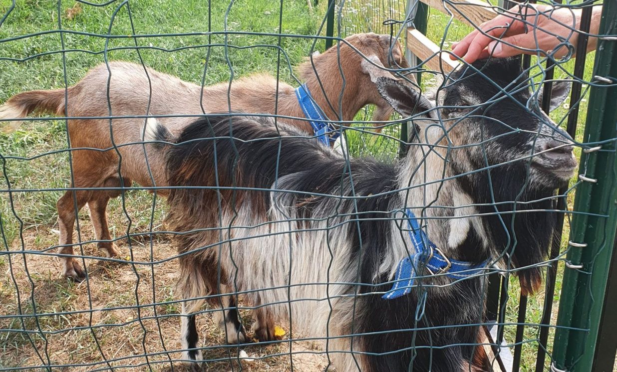 Abu mīlules ir kazas. No kādas sievietes nopirkuši jau grūsnu pundurkazu, Afgāņu džudžu, kurai ir atskrējuši divi raibi kazlēni. “Puikam jau bārda aug, ļoti liels nebēdnis, jau interesējas par meitenēm, tāpēc to lūpu tā uzrāvis,” stāsta Vineta.
